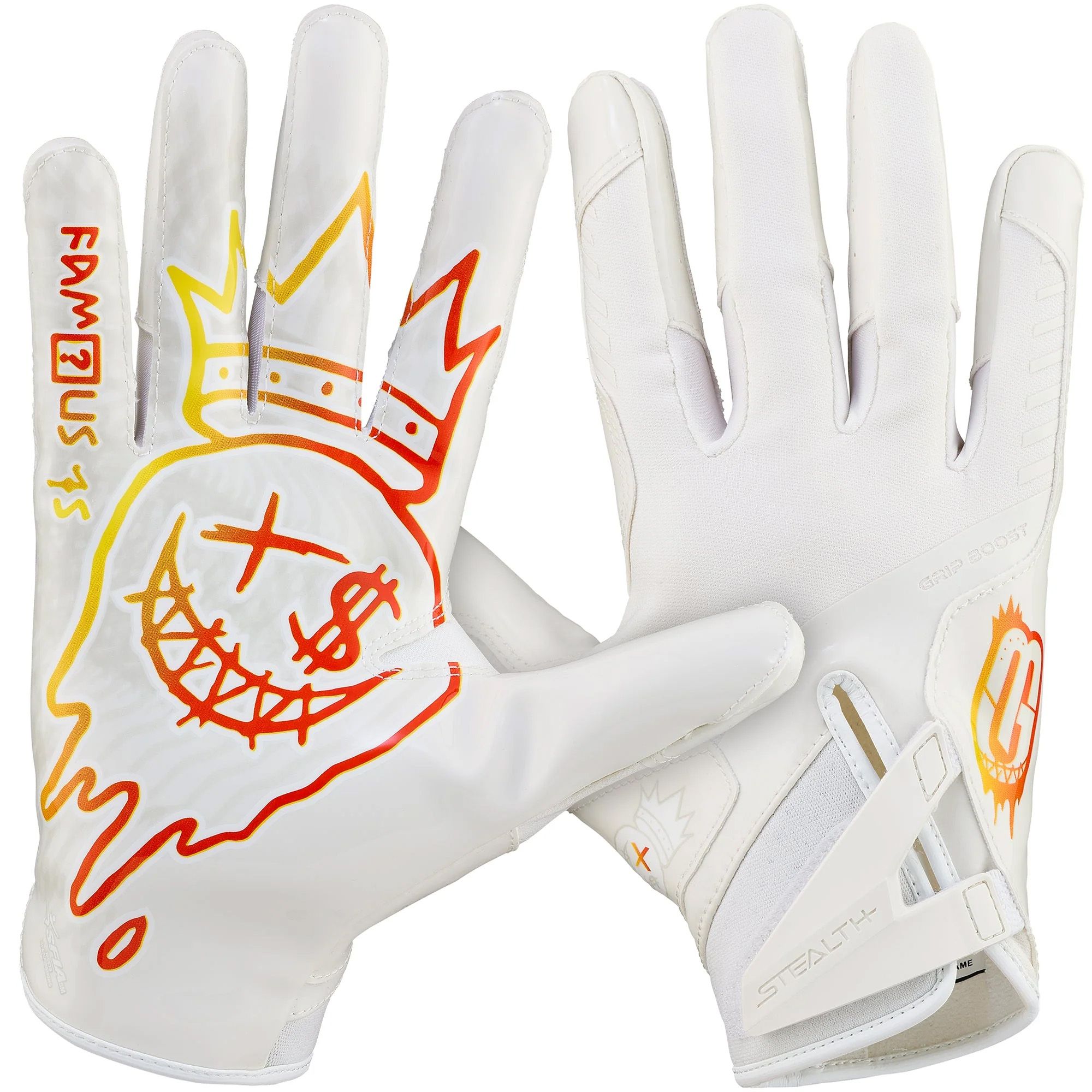 The Grip Boost Stealth 6.0 Boost+ youth football gloves limited-edition design, created in collaboration with DeSean Jackson are engineered for excellence, featuring an advanced grip formula that ensures unparalleled control, allowing you to catch, throw, and handle the ball with unmatched precision. The Boost+ Grip technology provides an adhesive-like grip without sacrificing flexibility, giving you the confidence to make game-changing plays.