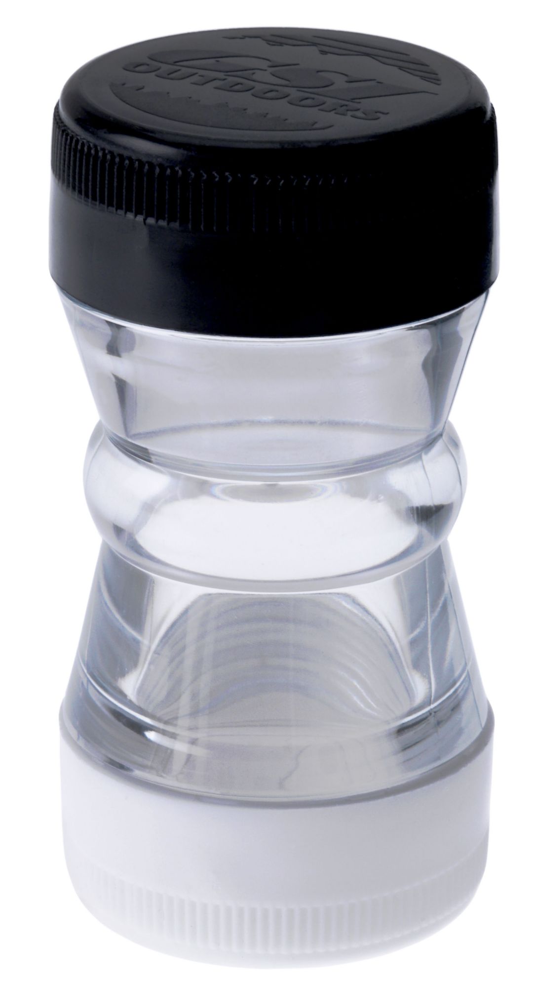 Store the GSI Outdoors® Salt and Pepper Shaker in your backpack for your next outdoor meal. The compact, twin-compartment design makes it easily portable. The waterproof screw caps keep your salt and pepper dry and fresh. With removable screens and caps, easily refill the shaker with different spices if you desire.