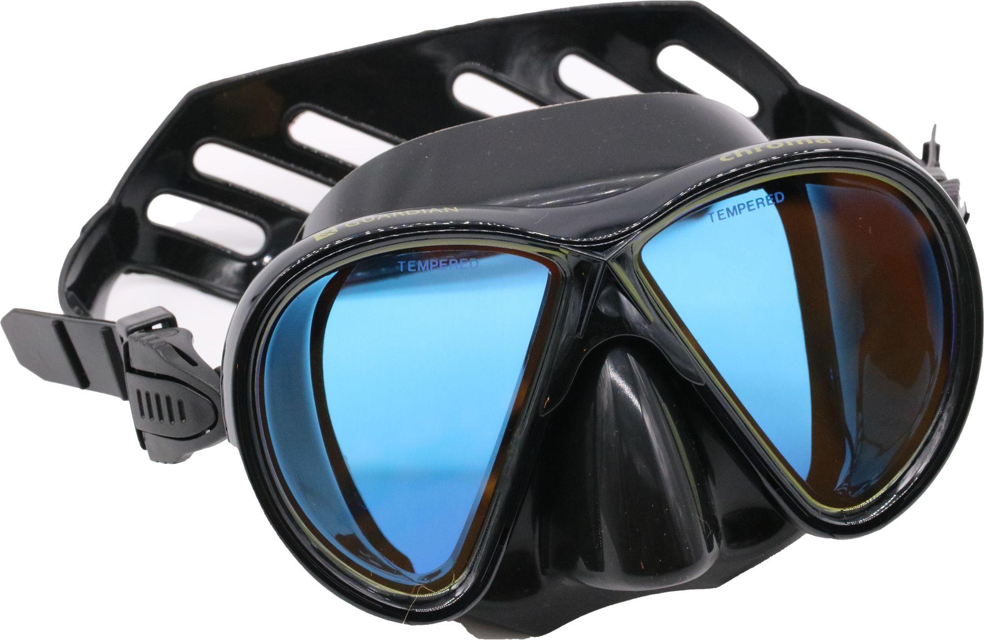 High definition, high tech lenses with dual color lens. Outer mirrored lens has 9 layers of coating while inner lens has contrasting color. When looking through both, user enjoys improved vision and more correct color within the water column. Lenses also come with the industry's best anti-fog treatment which allows for fog-free use right out of the packaging. Pro level quality for scuba diving or snorkeling. Features