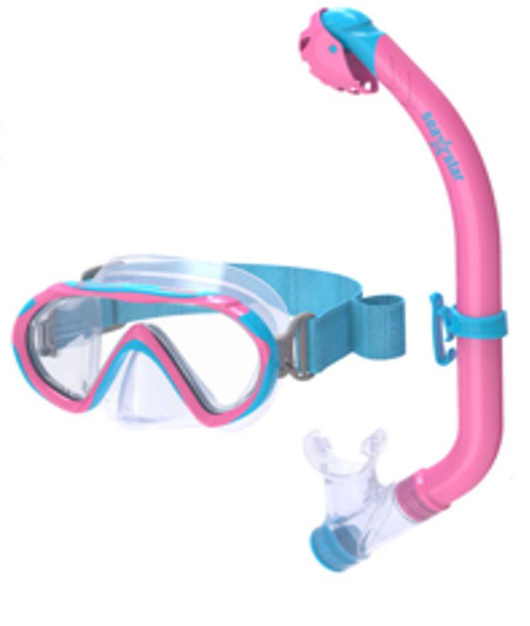 New elastic COMFO STRAP for extra comfort and built in snorkel loop. Wide vision, silicone mask with matching dry top snorkel. Two tone, single tempered lens mask perfect for most 5-11 year olds. Dry top snorkel keeps water out. No water splashes in on surface, closes when submerged to keep water out when swimming underwater. Siliter mouthpiece.