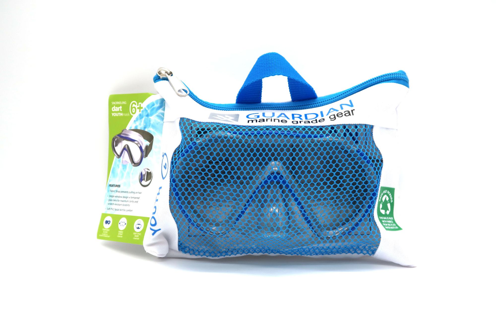 Packaged in reusable MARINE WHITE nylon/mesh carry bag made of recycled materials for environmental sustainability