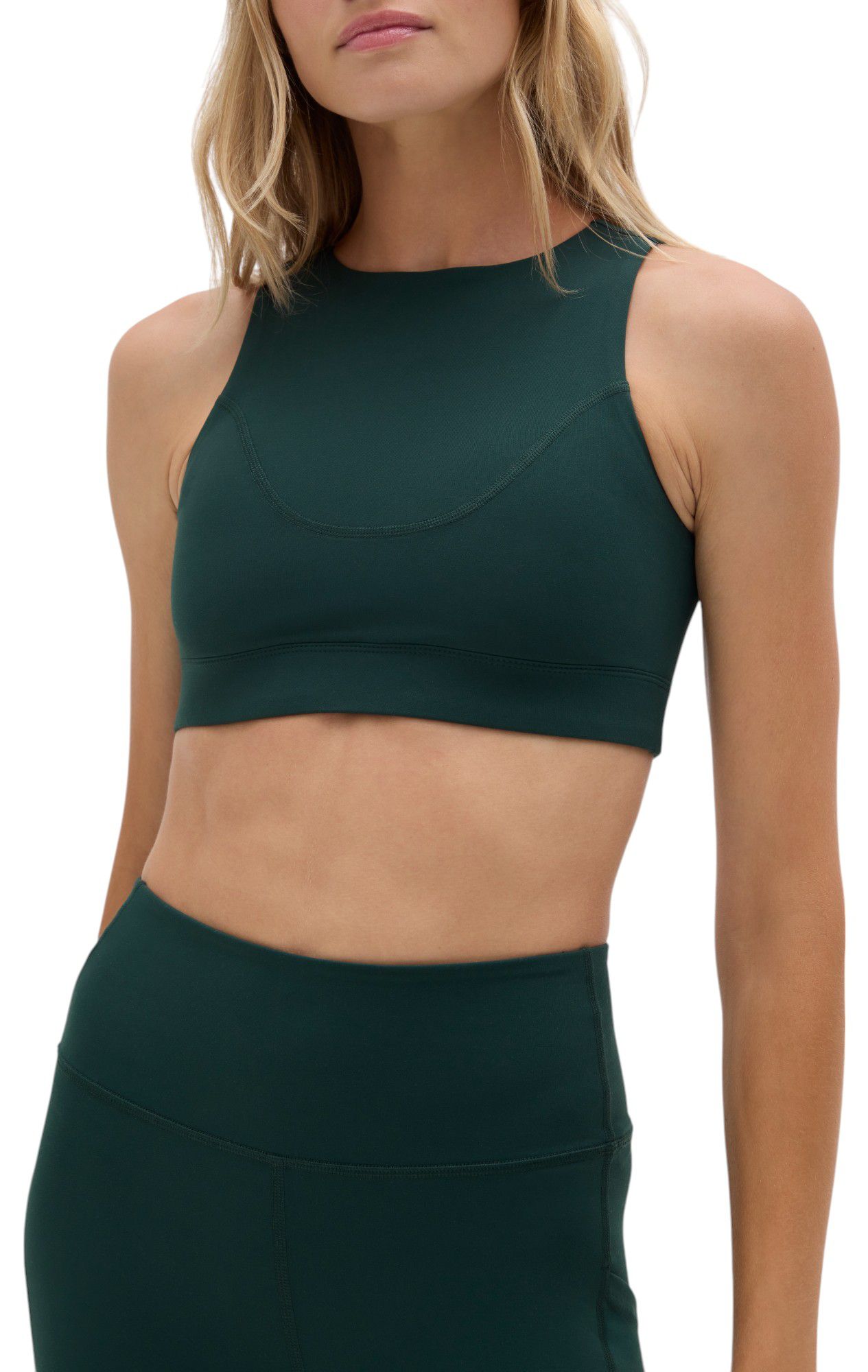 Our medium-impact racerback sports bra, fabricated with brrr° fabric technology that wicks sweat and cools skin temperature for peak active performance.