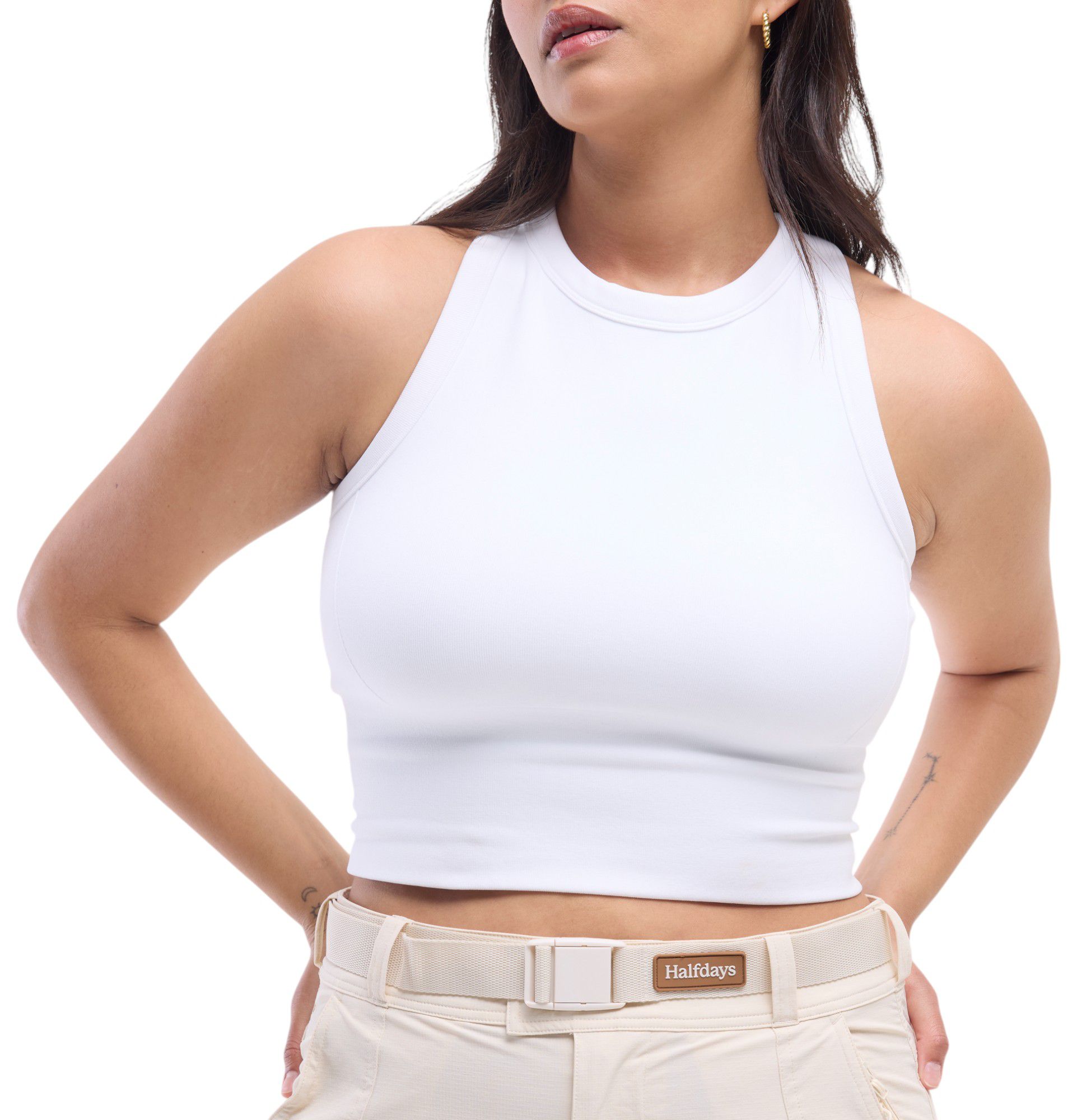 Halfdays' technical everyday tank, designed with a soft, compressive ribbing for full support, and quick-drying to keep you dry, no matter where the trail takes you.