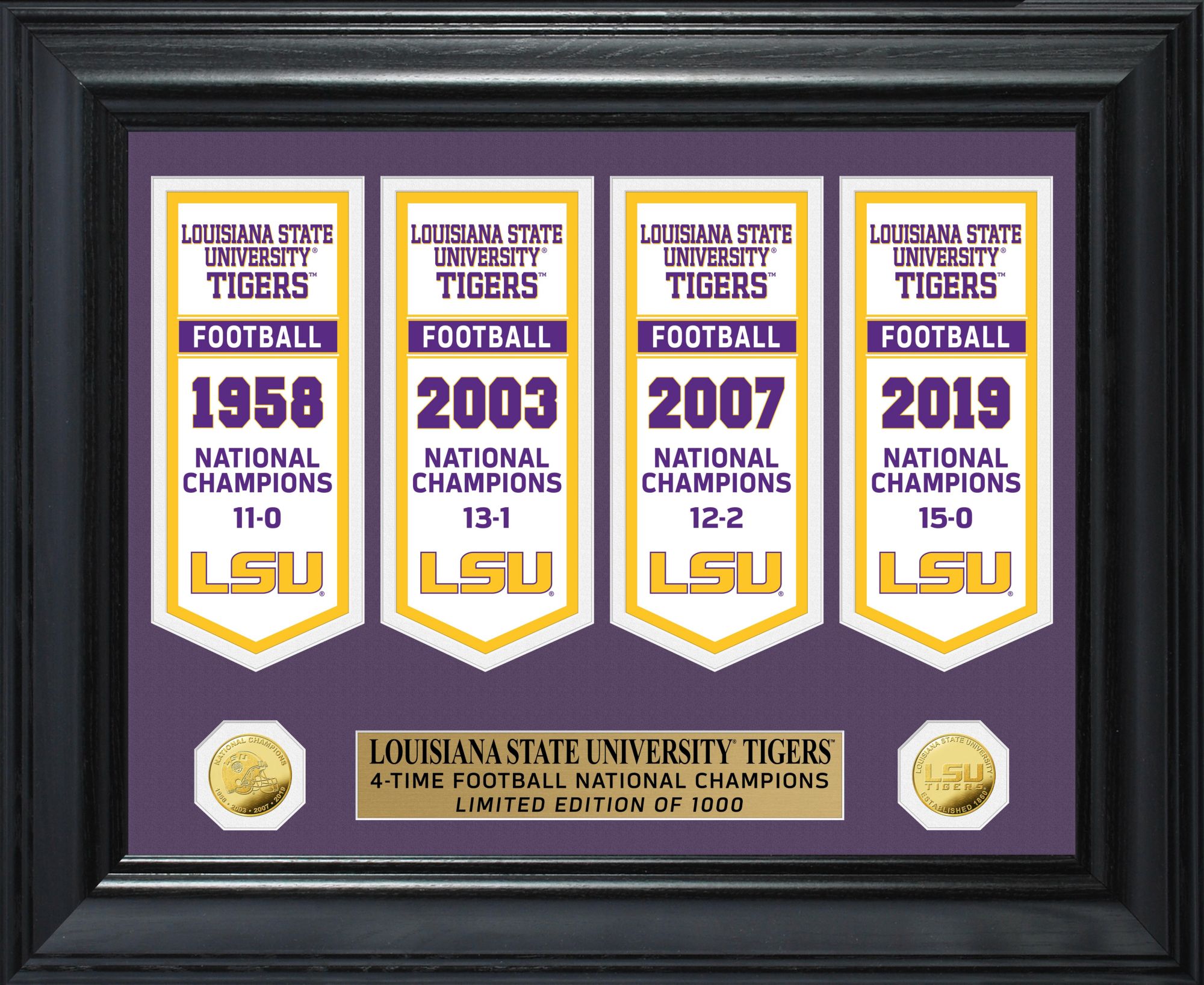 Pay tribute to your team's success with The Highland Mint® 2019 National Champions LSU Tigers Gold Coin Deluxe Banner Collection.