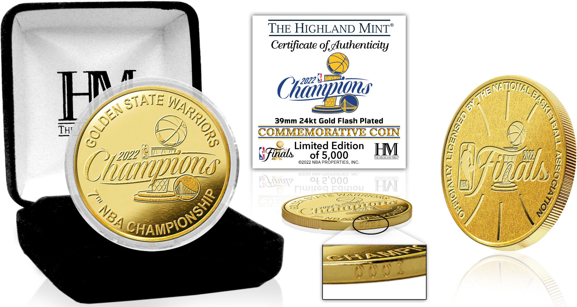 Highland Mint 2022 NBA Champions Golden State Warriors Gold Mint Coin