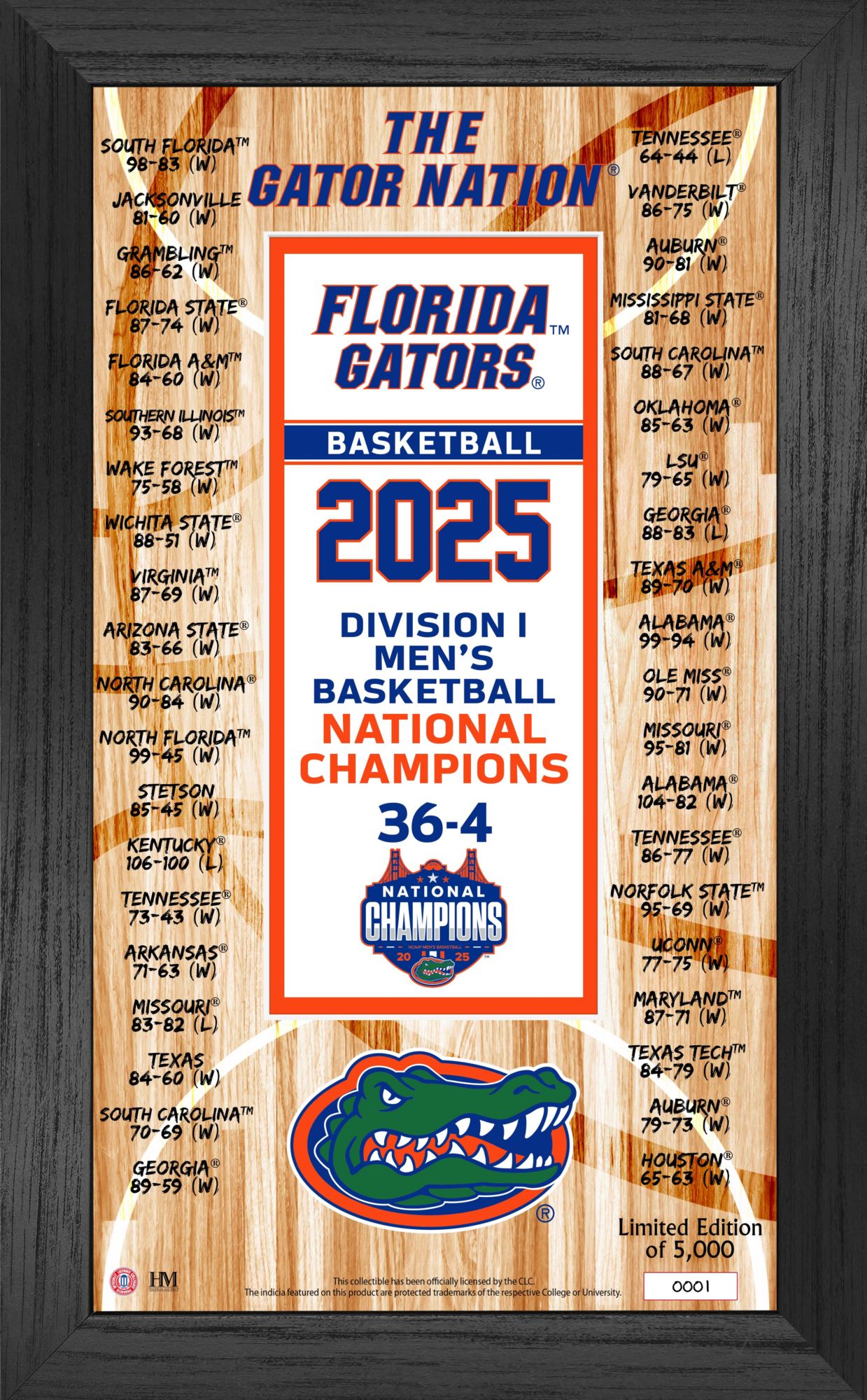 Highland Mint 2024-25 Men's Basketball National Champions Florida Gators Banner Photo Frame