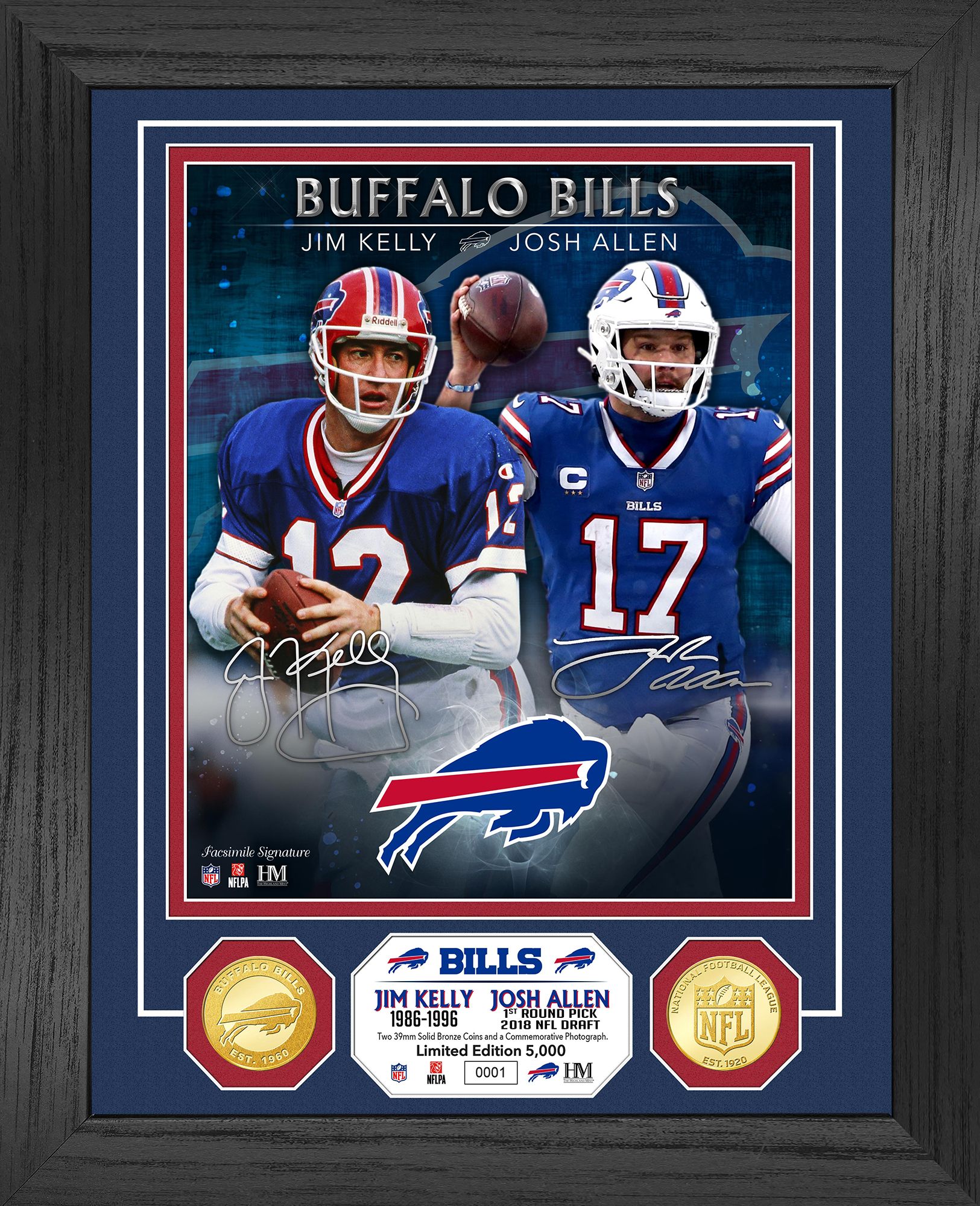 Highland Mint Buffalo Bills Jim Kelly & Josh Allen Bronze Coin Photo Mint