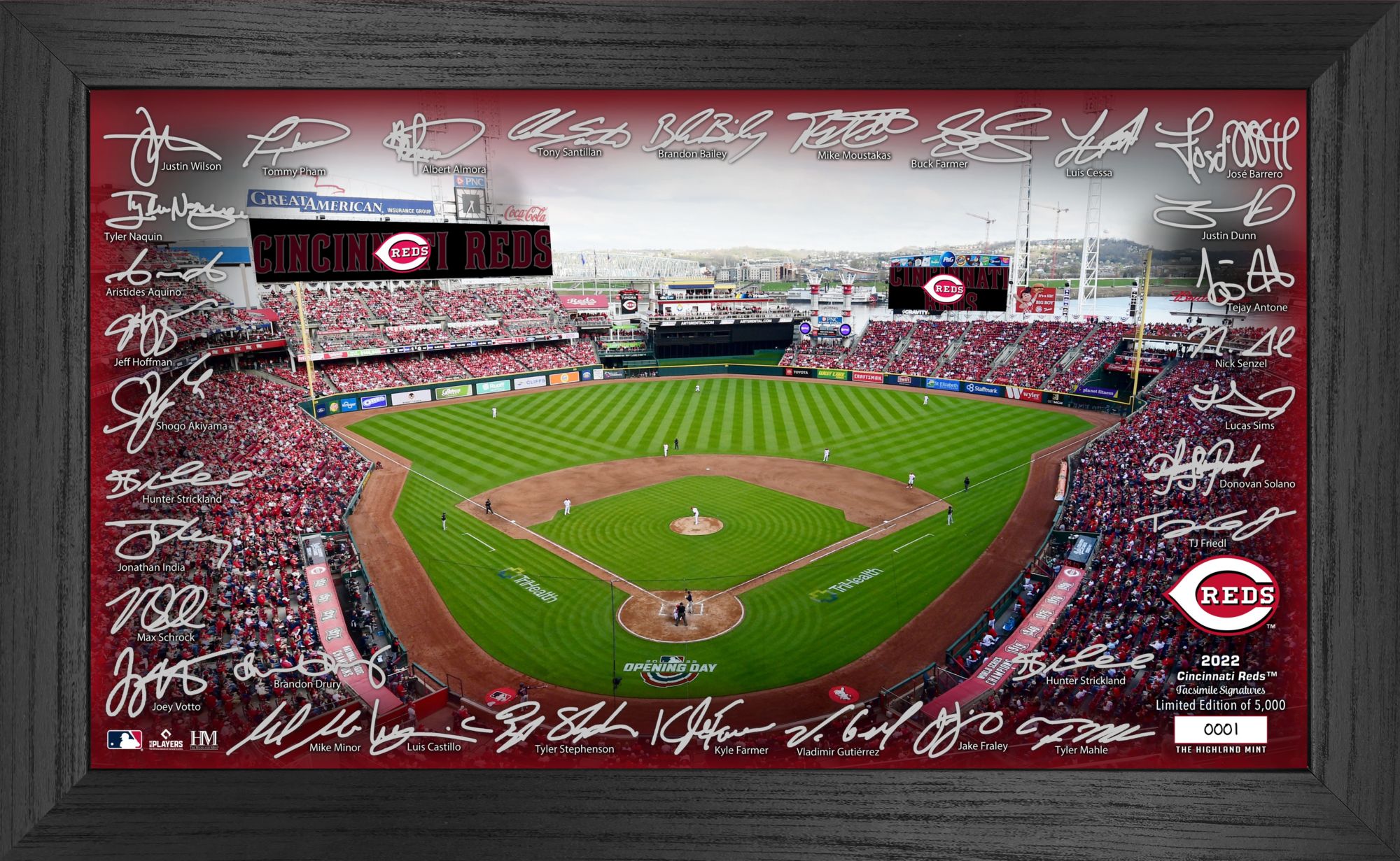 Highland Mint Cincinnati Reds Signature Framed Field Print