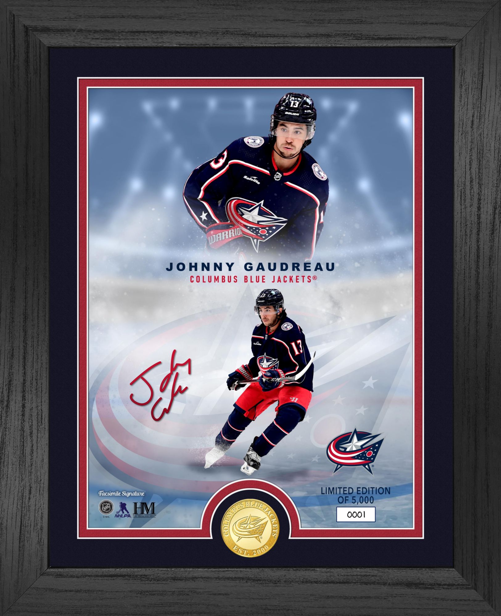 Highland Mint Columbus Blue Jackets Johnny Gaudreau Legends Bronze Coin Photo Frame