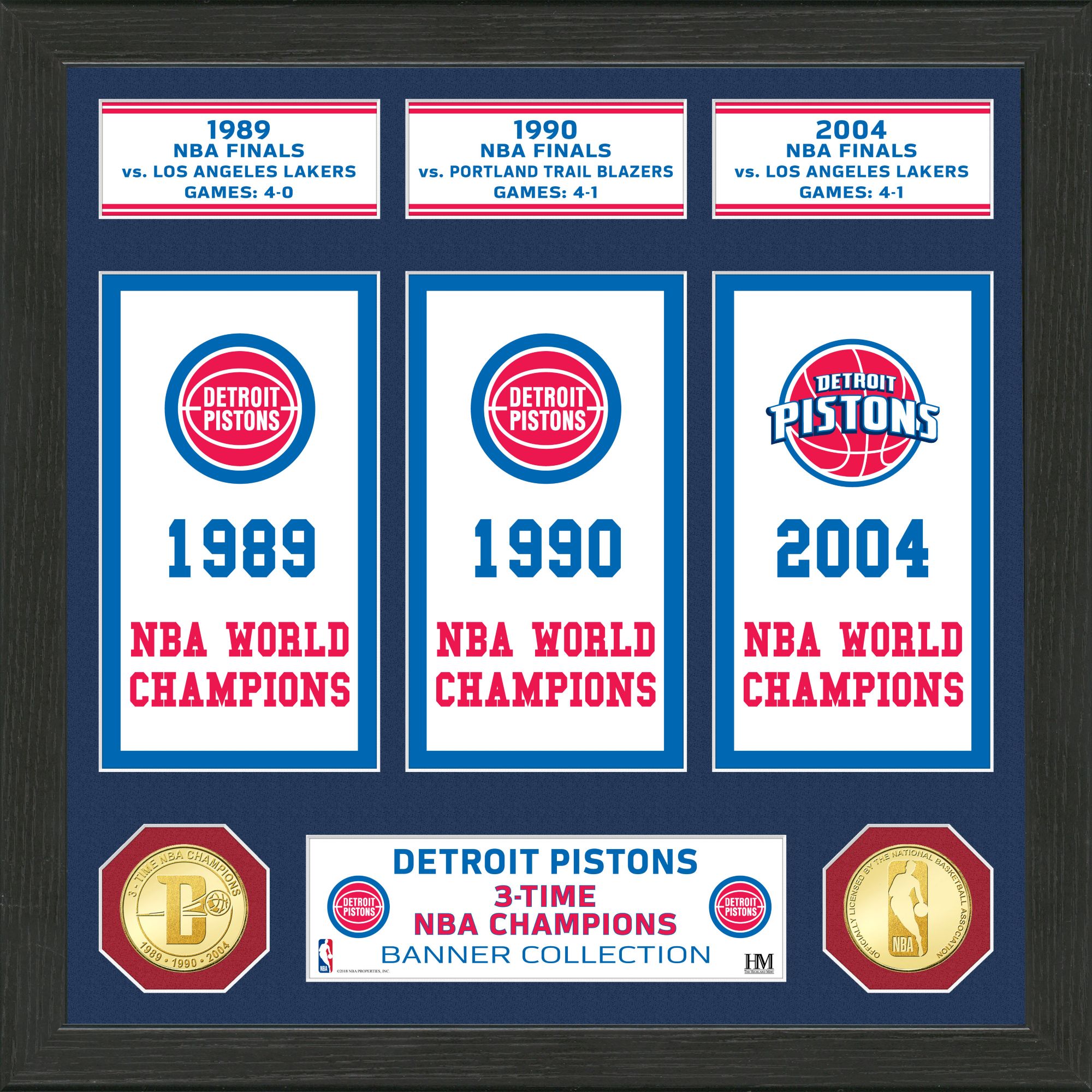 Highland Mint Detroit Pistons Banner Bronze Coin Photo Mint