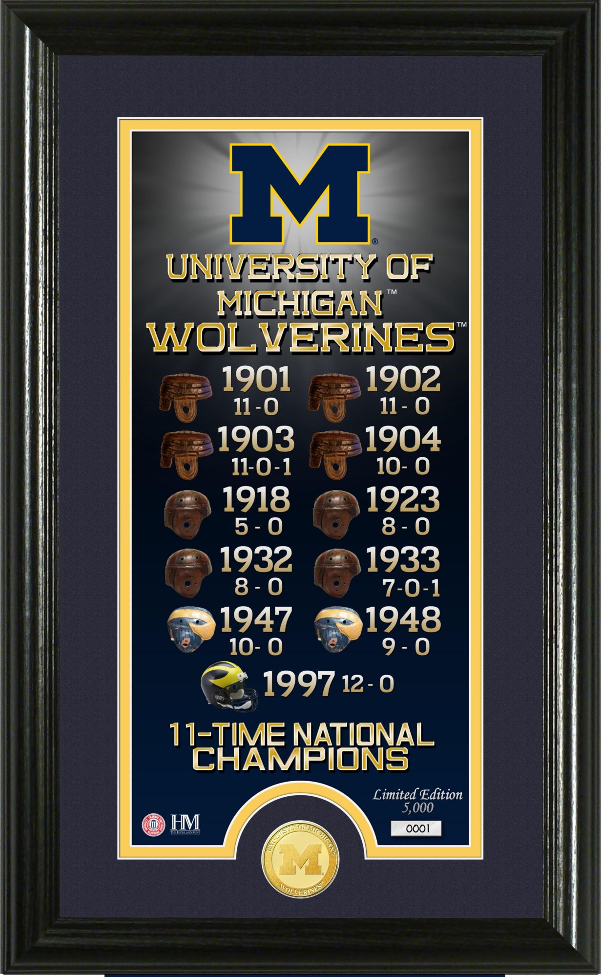 Your team has an extentsive history. Commemorate their accomplishments with the Highland Mint® Michigan Wolverines Legacy Photo.