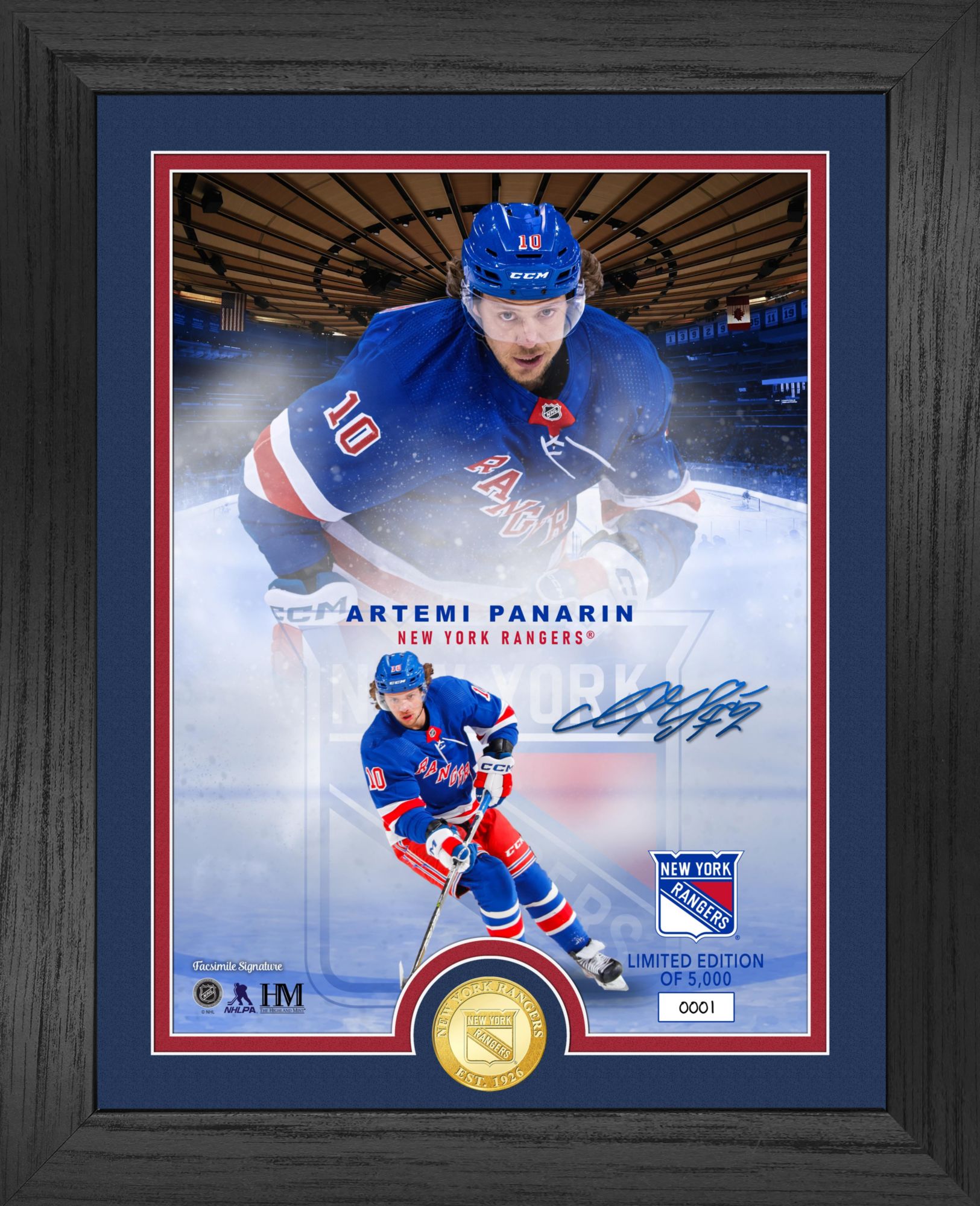 Highland Mint New York Rangers Artemi Panarin Legends Bronze Coin Photo Frame