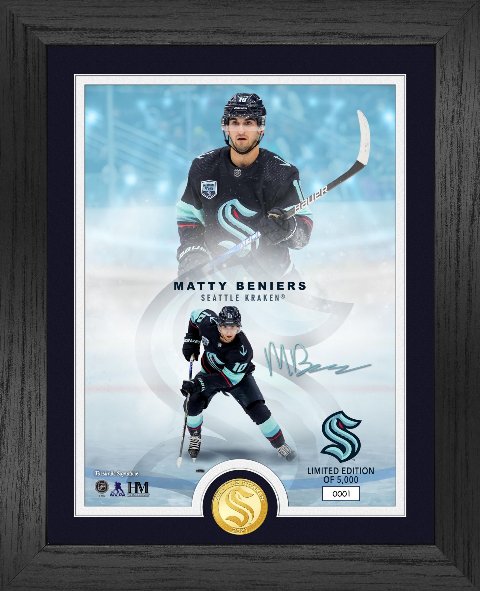 Highland Mint Seattle Kraken Matty Beniers Legends Bronze Coin Photo Frame