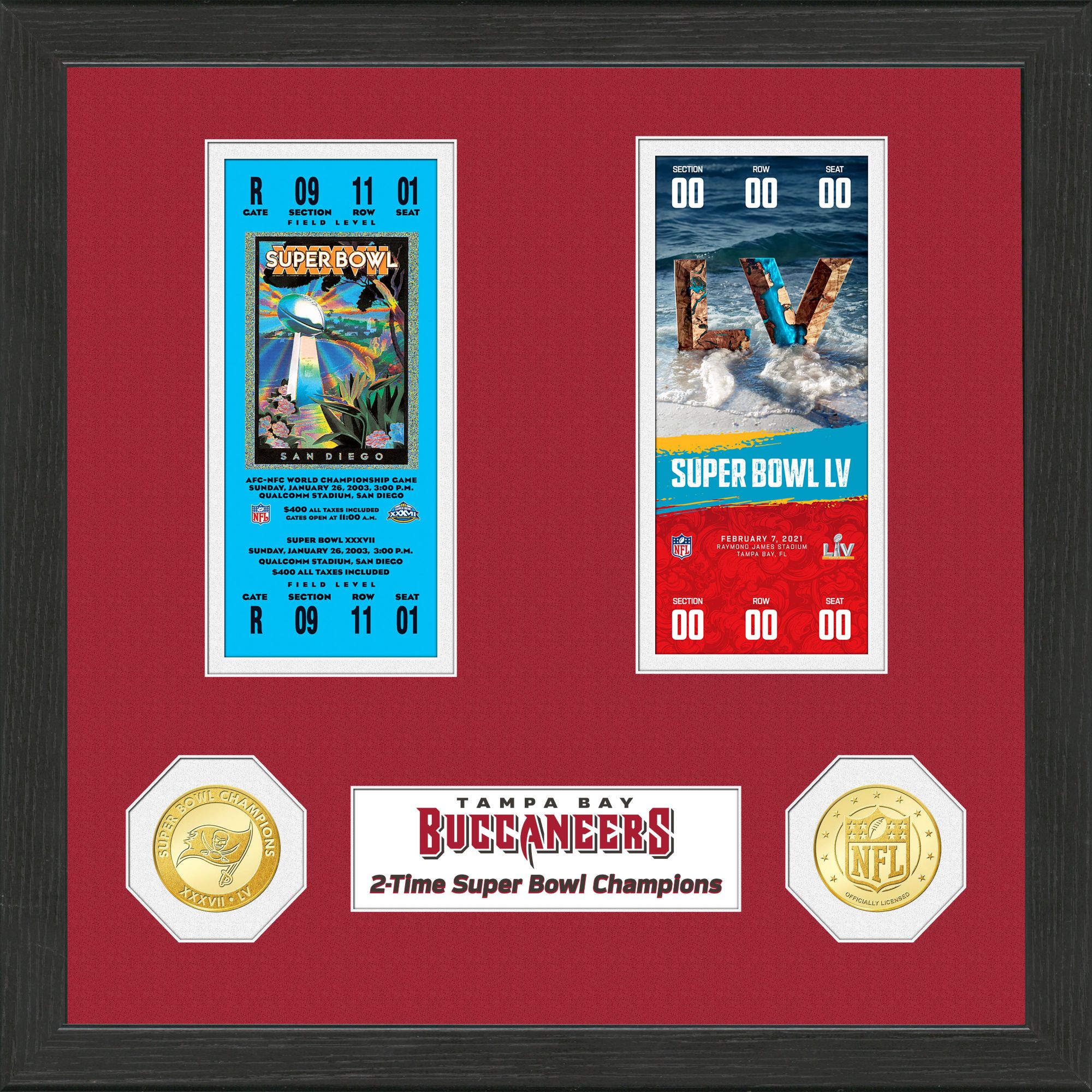 Highland Mint Super Bowl LV Champions Tampa Bay Buccaneers 2X Champions Ticket and Coin Collection