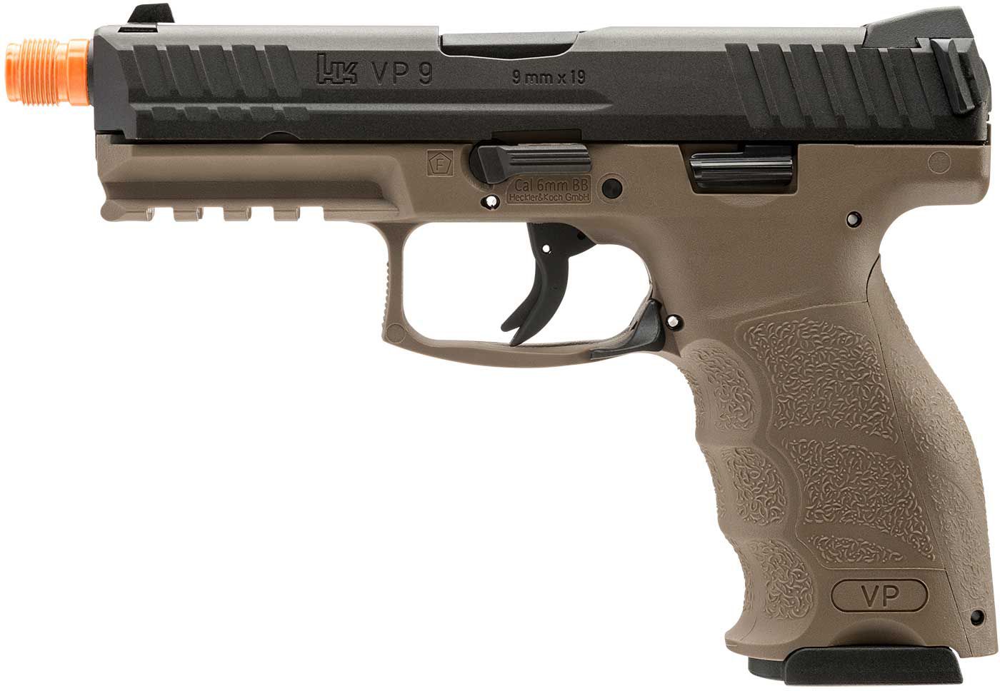 Pack a side-arm like the HK® VP9 Gbb airsoft gun with you for your next airsoft battle. Perfect for use in close quarter combat or when you run out of ammo in your main rifle, the VP9 GBB airsoft gun features a metal slide with blowback action for added realism as well as semi-automatic performance. Additionally, the VP9 GBB airsoft gun has a 22 round magazine for ample shooting opportunity.