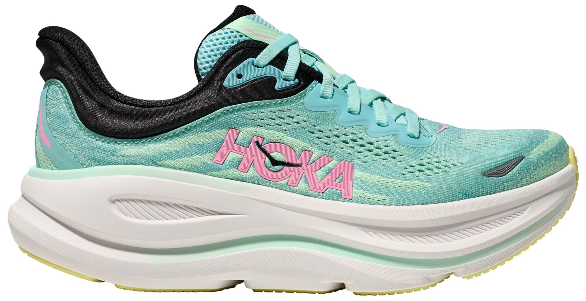 Experience unparalleled comfort and support with the HOKA Women's Bondi 9 Running Shoes. Designed with an engineered mesh upper made from 55% recycled polyester and a Rearfoot-Focused Active Foot Frame™, these shoes cradle your feet for a secure fit. The critically foamed EVA midsole and molded sockliner ensure long-lasting cushioning, while the Durabrasion rubber outsole provides excellent durability and traction.