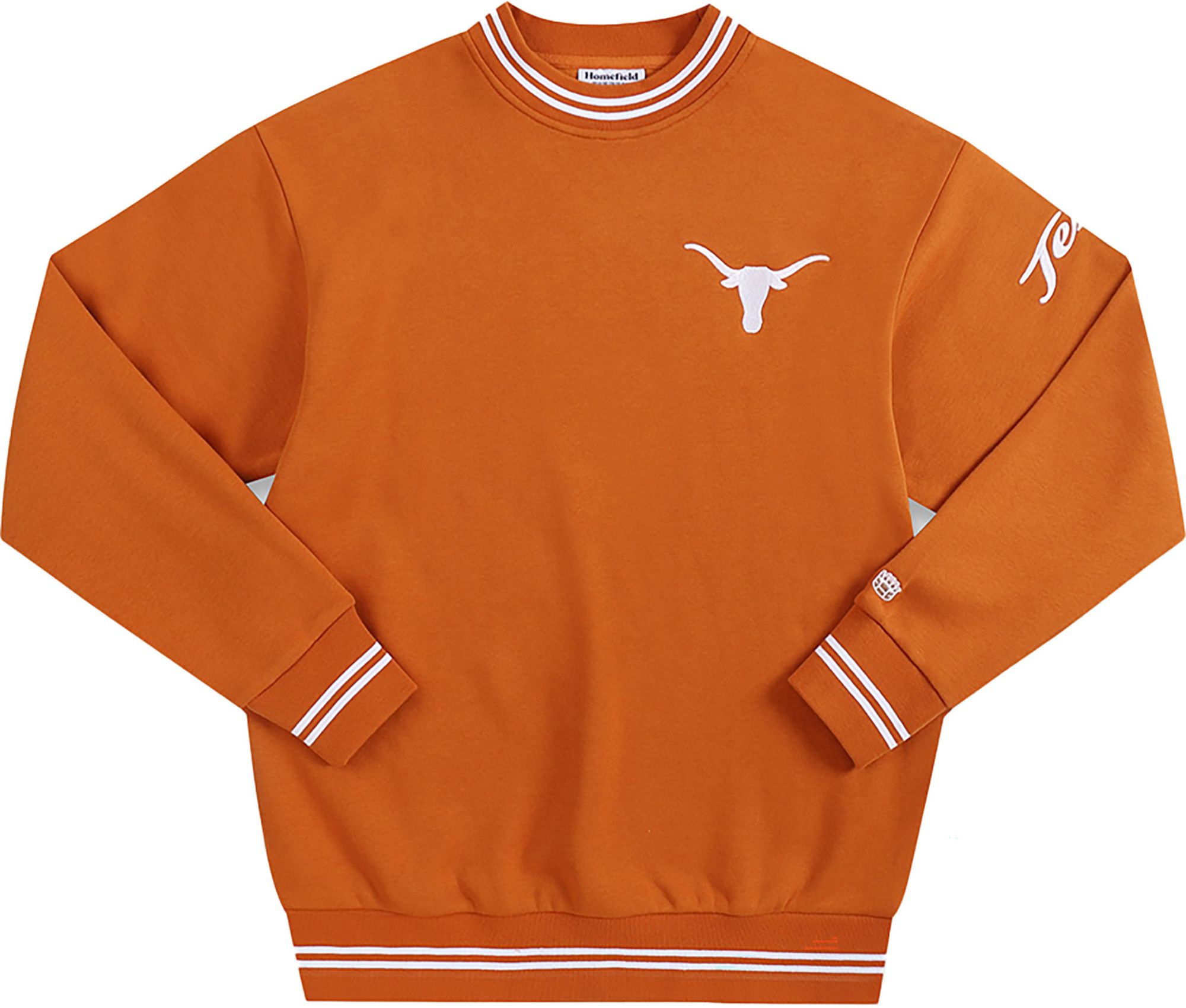 Homefield Adult Texas Longhorns Burnt Orange Tri-Stripe Crew Pullover Sweatshirt