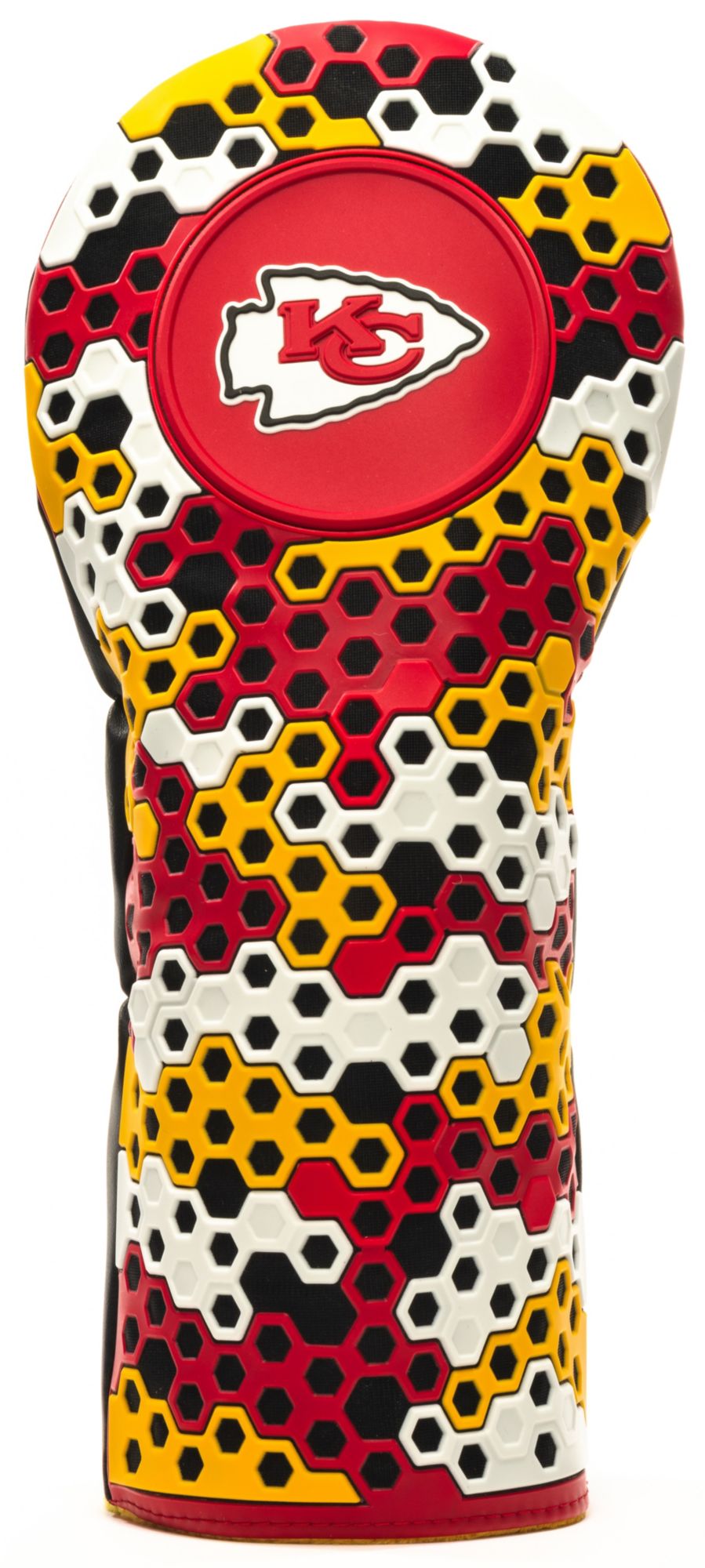 This officially licensed NFL golf driver headcover showcases the Kansas City Chiefs logo, infusing your golf bag with fandom. Ideal for any Chiefs fan, this headcover is a must-have accessory that proudly represents your favorite team in style on the fairways.