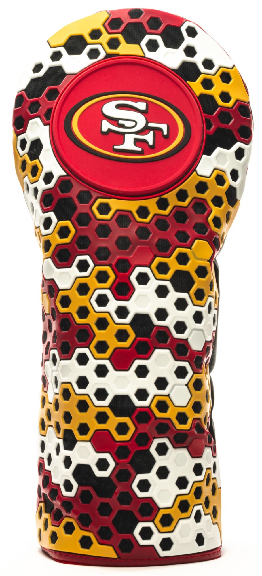 This officially licensed NFL golf driver headcover showcases the San Francisco 49ers logo, infusing your golf bag with fandom. Ideal for any 49ers fan, this headcover is a must-have accessory that proudly represents your favorite team in style on the fairways.