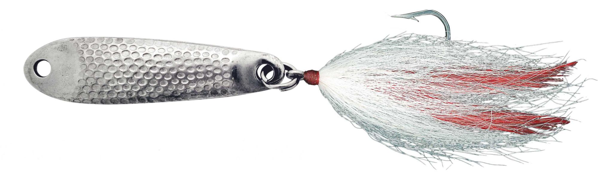 Increase the chances of hooking a trophy fish by using Hopkins’® Shorty Dressed Jigging Spoon. The versatile spoon can also be used with casting, trolling, and ice fishing, and attracts a wide range of gamefish. A thick, durable, stainless steel body resembles the profile of a baitfish, while the hammered finish reflects light to draw attention. Choose versatility and durability with the Shorty Dressed Jigging Spoon.