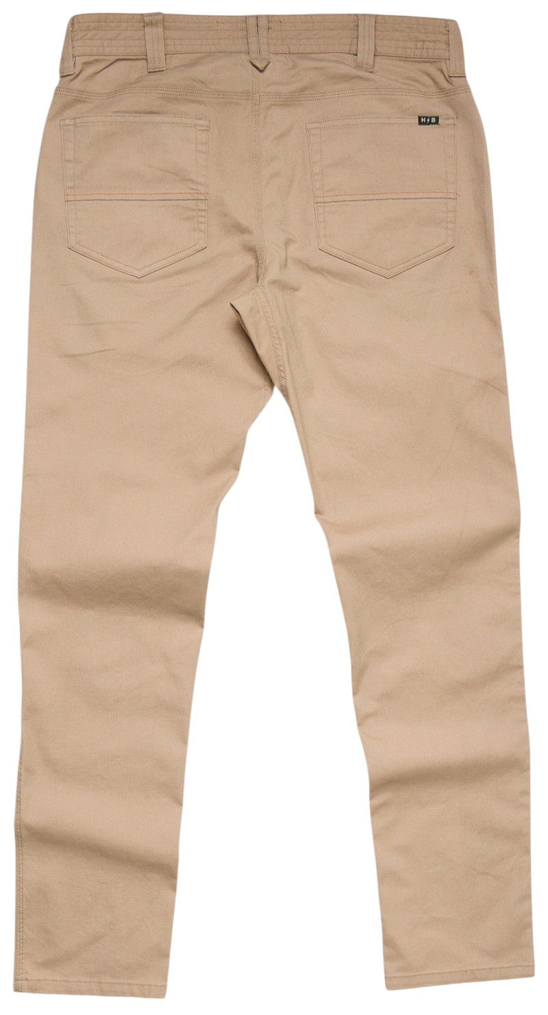 These are your classic design, everyday 5-pocket pants from Howler. The one and done pair that will last you a long time because we wove nylon and elastane into our cotton canvas blend and reinforced the construction throughout. Feel free to move about freely and look great doing it