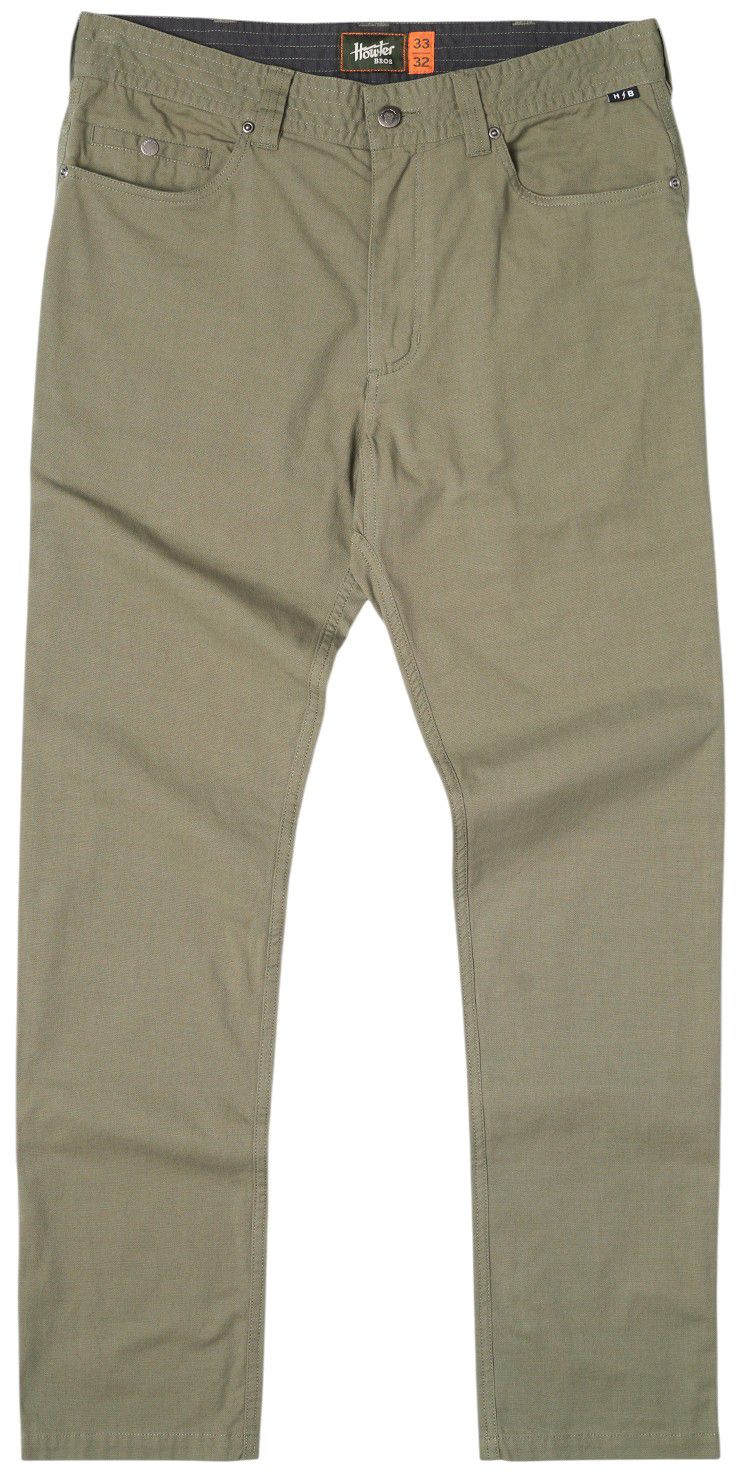 These are your classic design, everyday 5-pocket pants from Howler. The one and done pair that will last you a long time because we wove nylon and elastane into our cotton canvas blend and reinforced the construction throughout. Feel free to move about freely and look great doing it