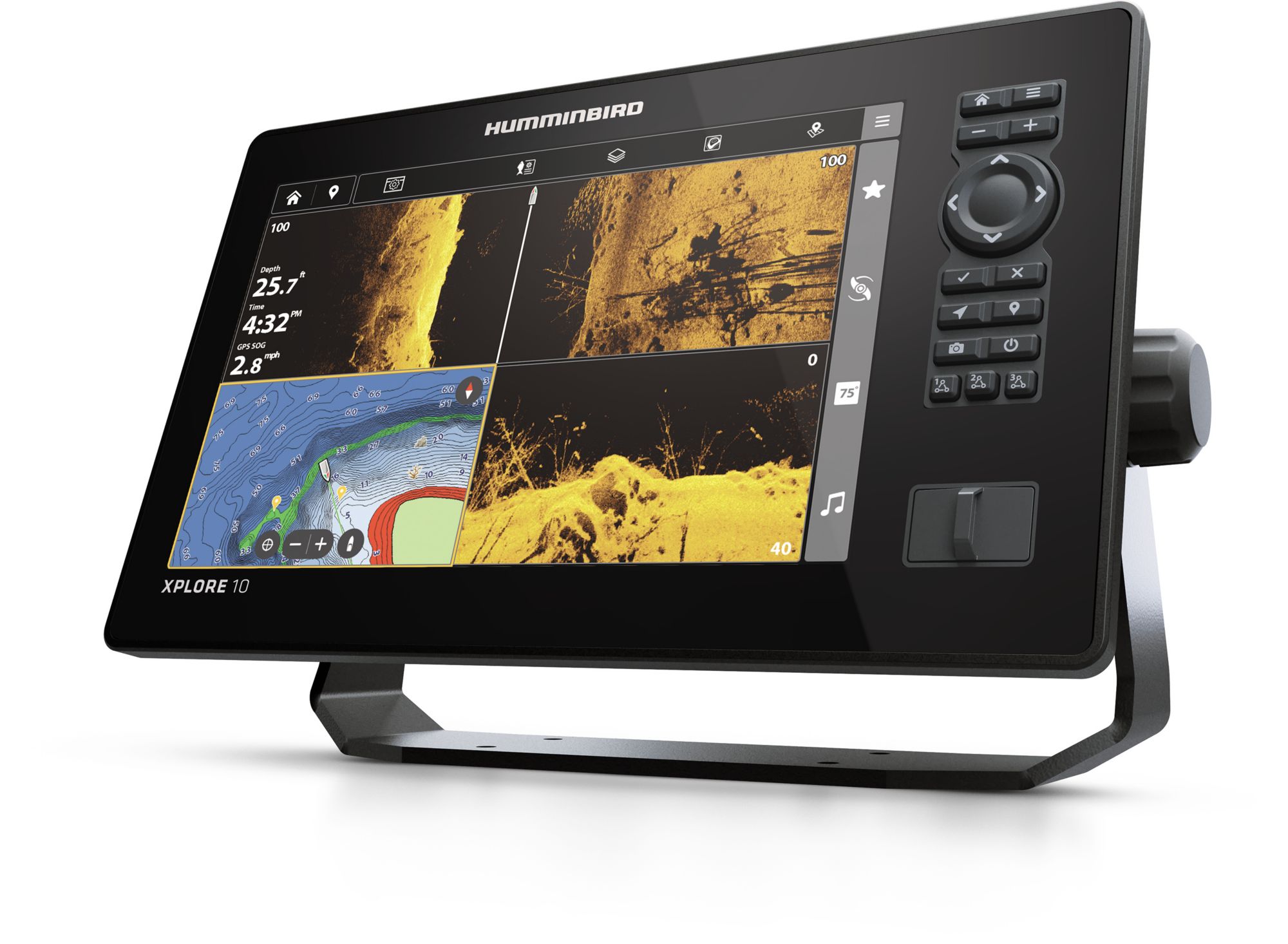 The XPLORE Series is lightning-quick and laser-focused on anglers’ favorite features. Find your fishing spots faster with included LakeMaster and CoastMaster charts. Sync 10,000 fish spots with custom colors and icons to your phone through a new waypoint management system. Get the clearest picture of what’s below with compatibility for our best sonar, including MEGA Live 2 forward-facing sonar. Connects to Minn Kota products and control them on command – from enabling Advanced GPS navigation to deploying shallow water anchors – with One Boat Network compatibility. With our most advanced technologies and easy-to-use interface, there’s more to XPLORE
