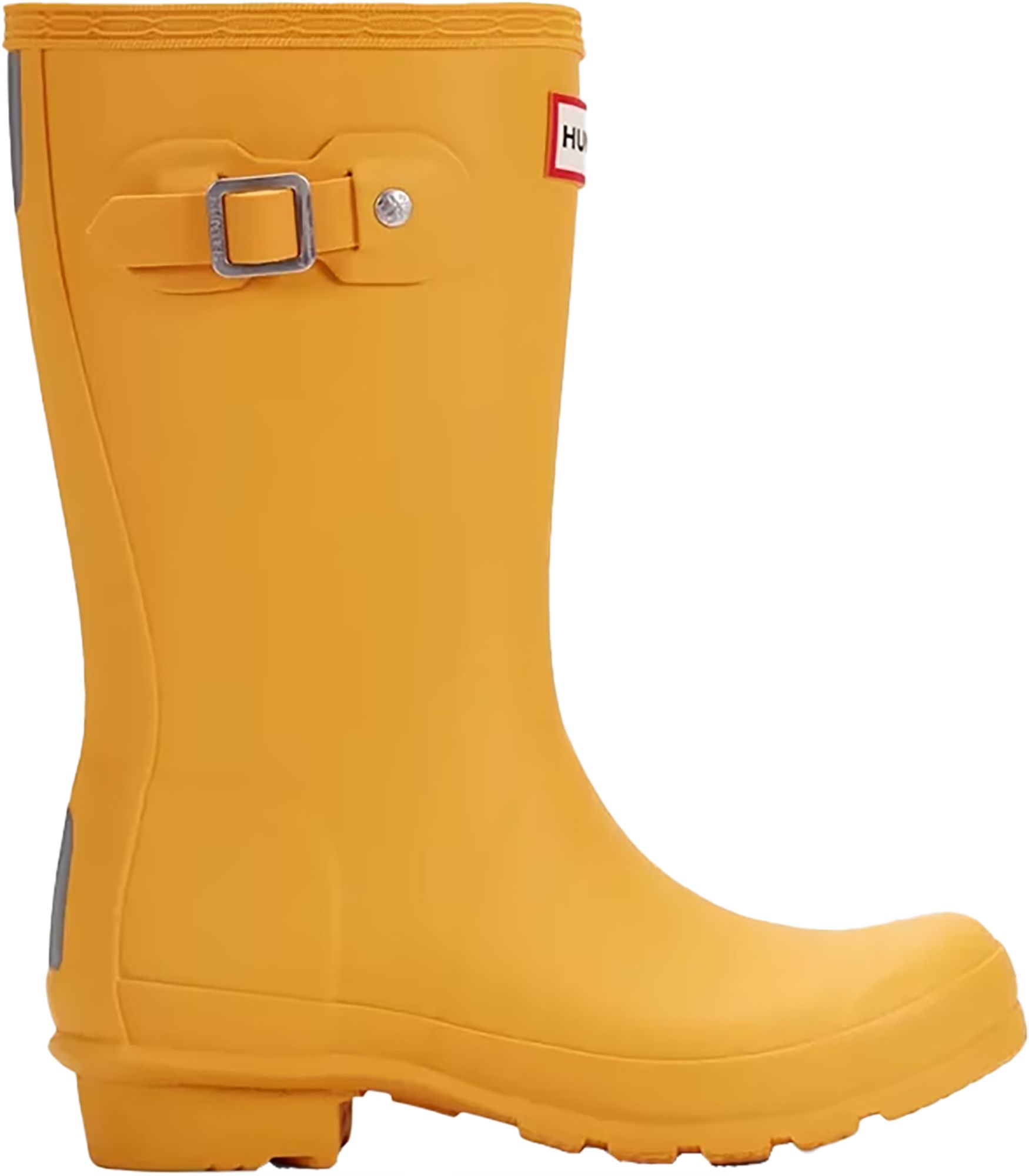 The Original Kids Wellington is a dream for junior explorers and a mini version of the iconic Original Tall Boot. This waterproof kids boot is handcrafted from natural rubber. Designed for adventures, our specialized kids wellies are highly resistant to wear and abrasion with a recycled polyester lining for comfort. Reflective patches and the Hunter Original tread offer added safety so you can be confident letting them take on the elements whatever the weather.