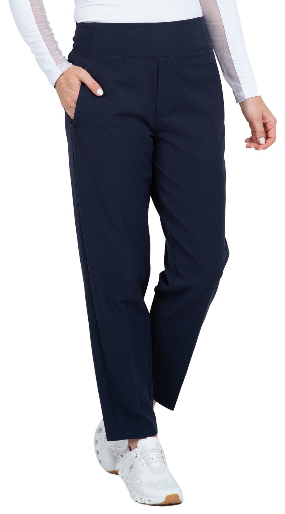 This everyday pant blends style with performance, designed to keep up with your active lifestyle. This sleek design features a stain-resistant, 4-way stretch, wrinkle resistant fabric, ensuring you stay stylish while remaining comfortable on the move. The deep front and back pockets keep all your essentials secure and easily accessible, making this silhouette a wardrobe staple.