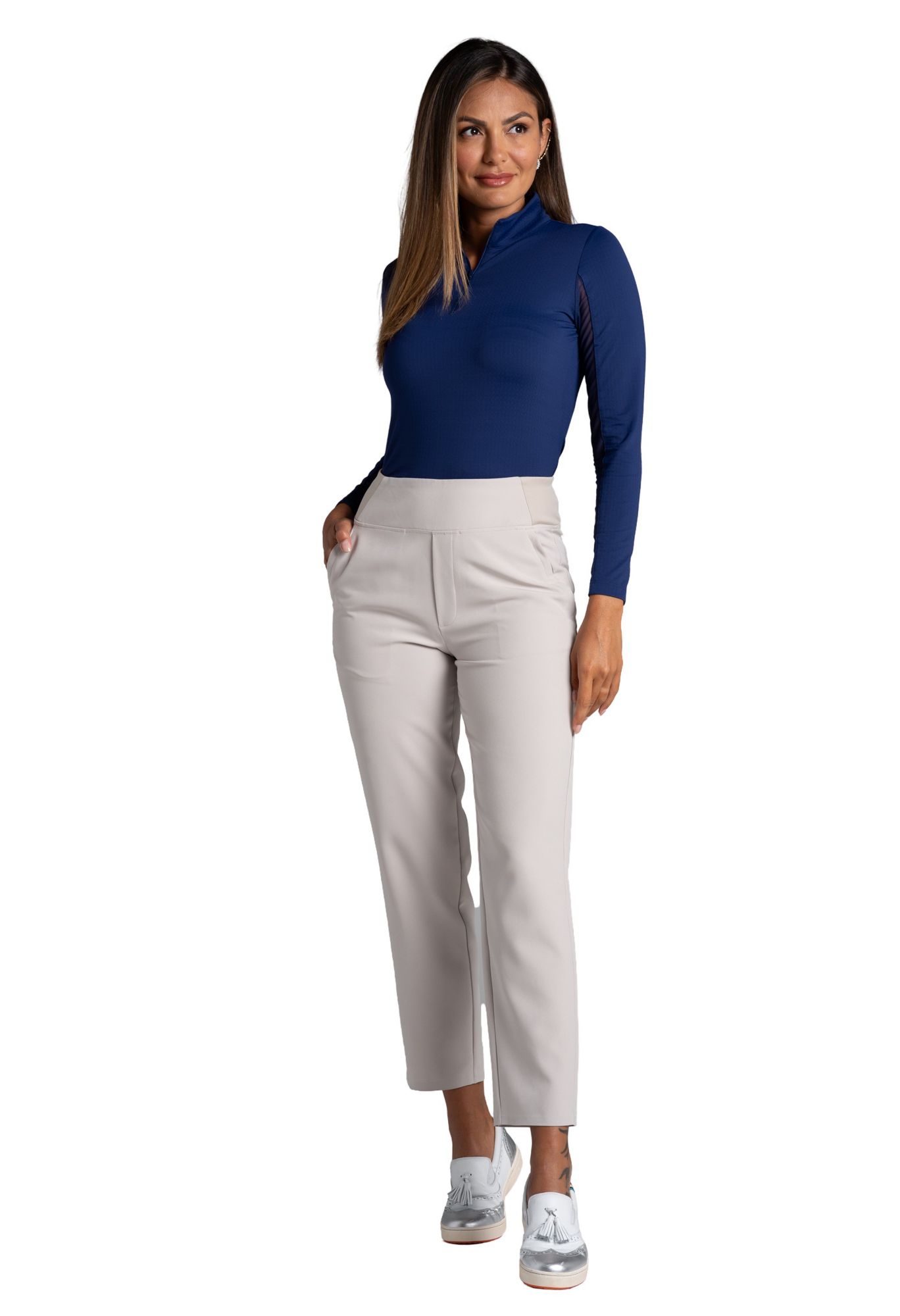 This everyday pant blends style with performance, designed to keep up with your active lifestyle. This sleek design features a stain-resistant, 4-way stretch, wrinkle resistant fabric, ensuring you stay stylish while remaining comfortable on the move. The deep front and back pockets keep all your essentials secure and easily accessible, making this silhouette a wardrobe staple.
