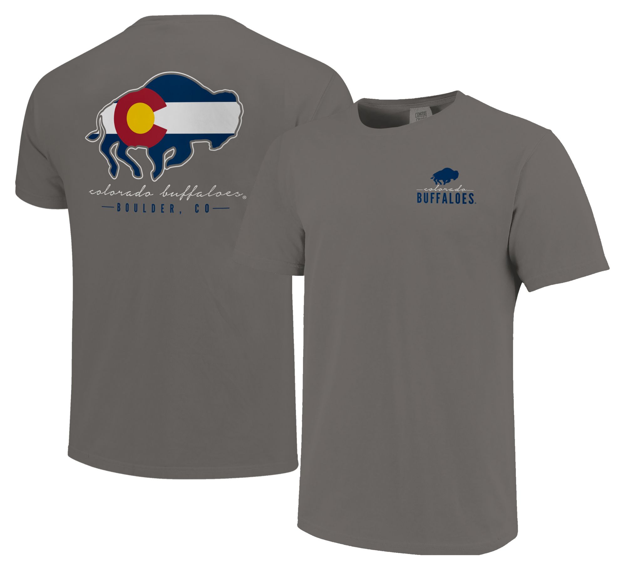 Image One Adult Colorado Buffaloes Grey Mascot Flag T-Shirt