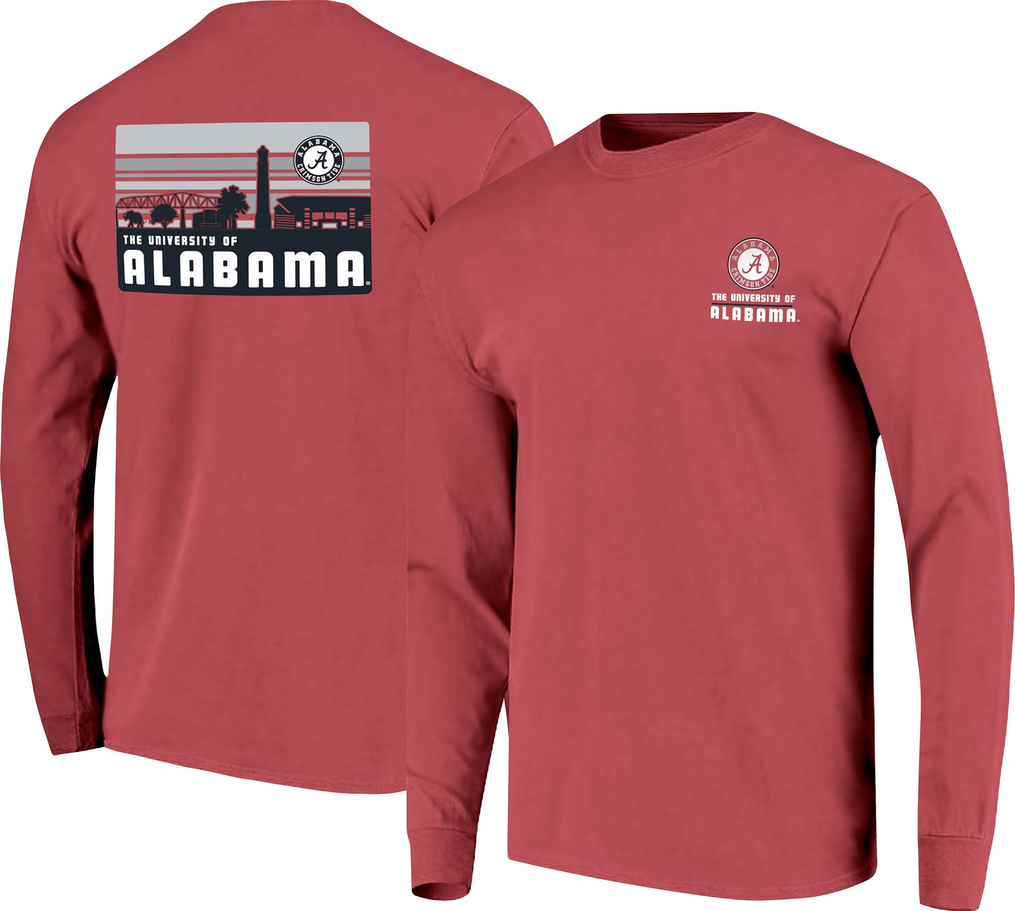 Image One Men's Alabama Crimson Tide Crimson Campus Skyline Long Sleeve T-Shirt