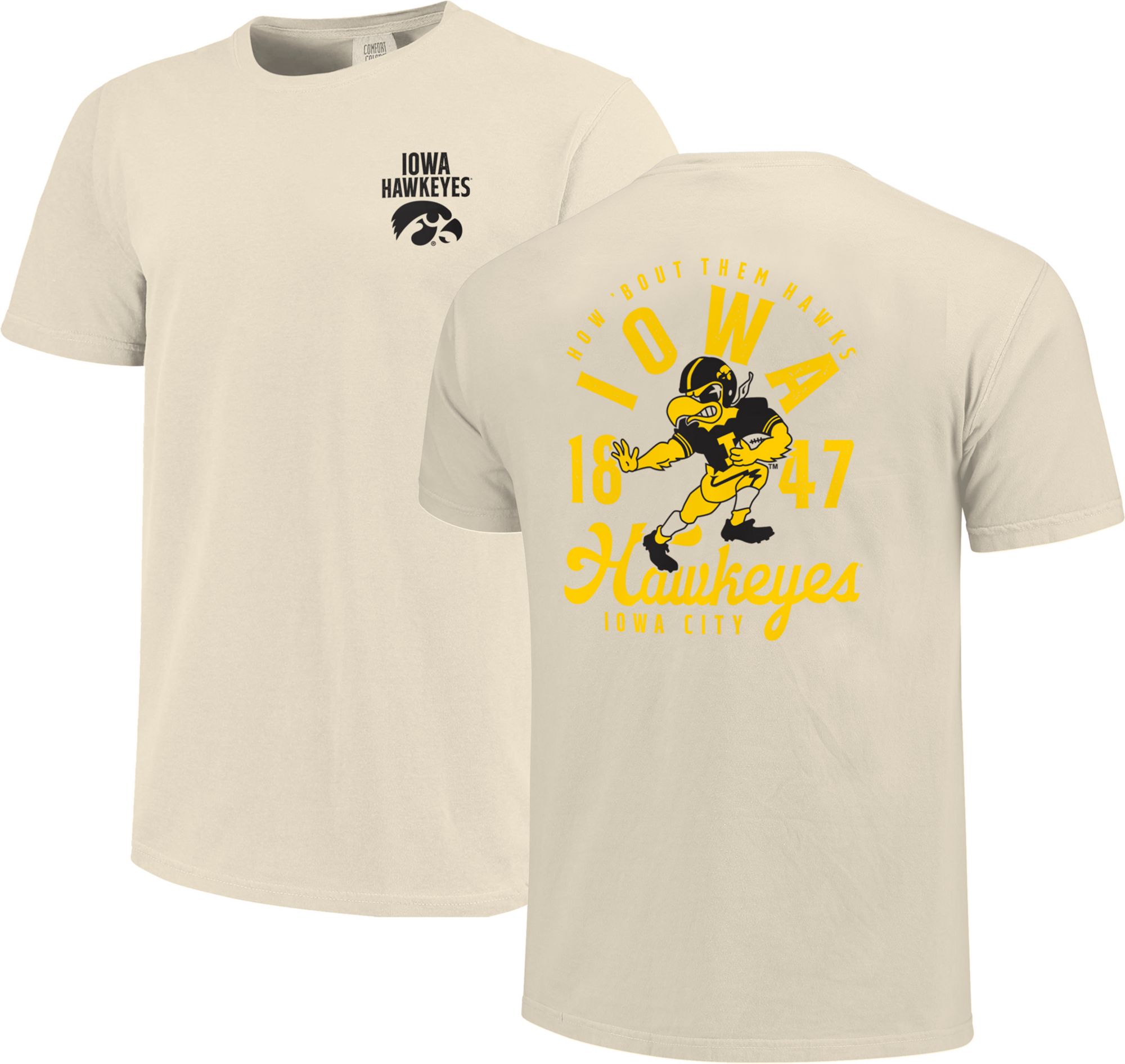 Image One Men's Iowa Hawkeyes Ivory Mascot Local T-Shirt