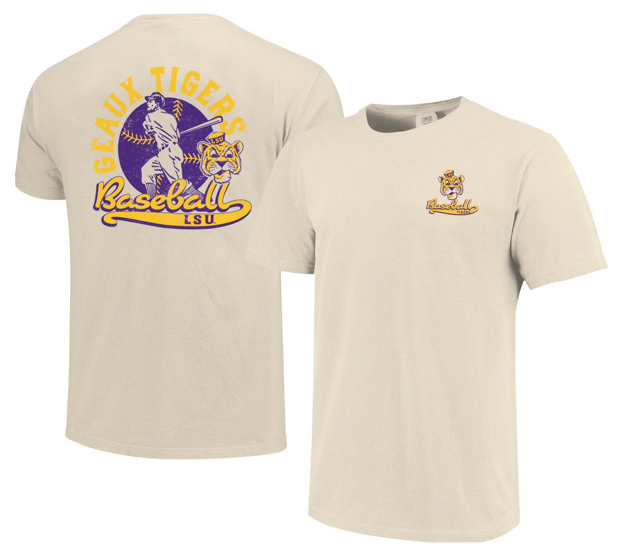 Image One Men's LSU Tigers Ivory Vintage Baseball Script T-Shirt