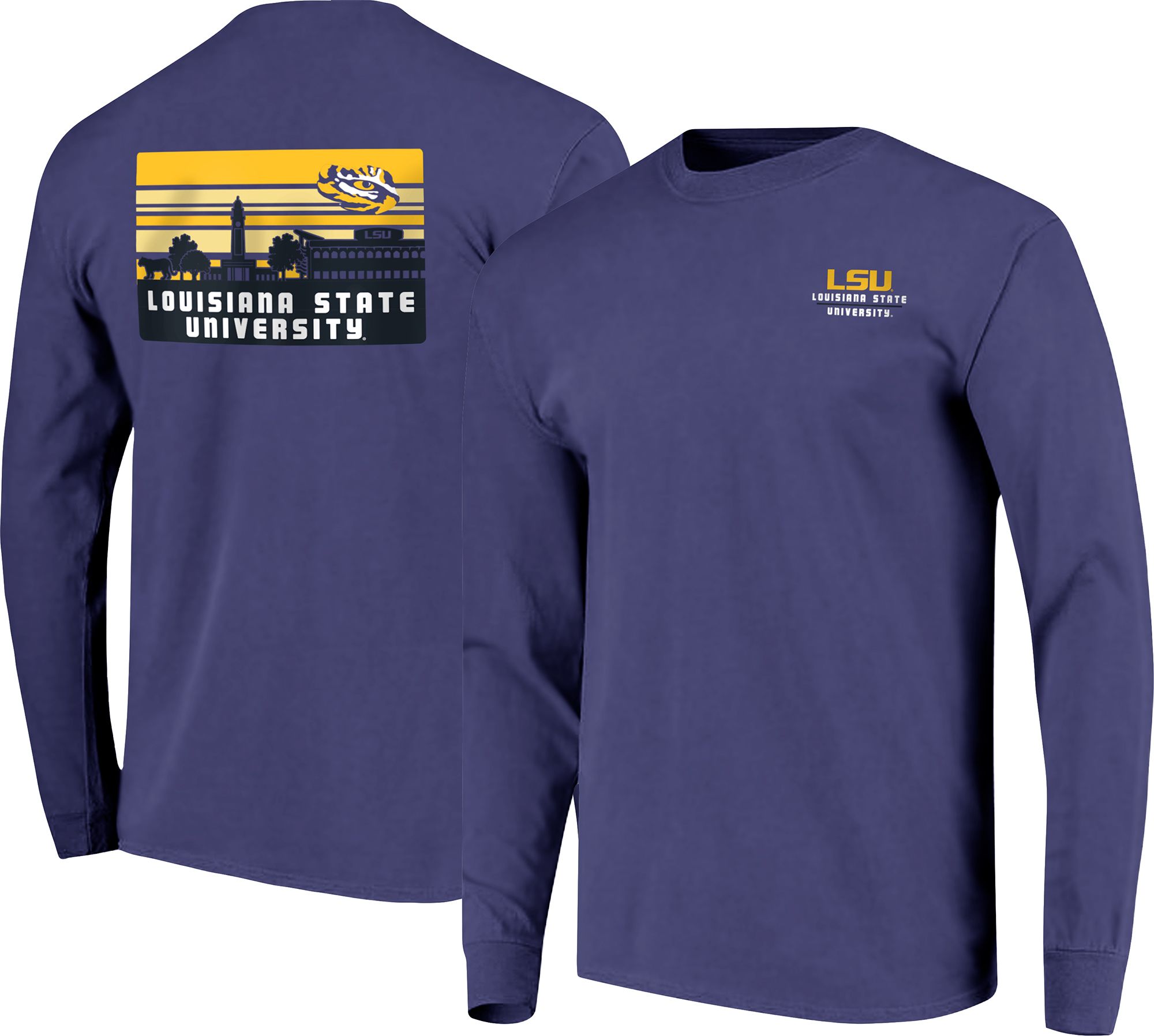 Image One Men's LSU Tigers Purple Campus Skyline Long Sleeve T-Shirt