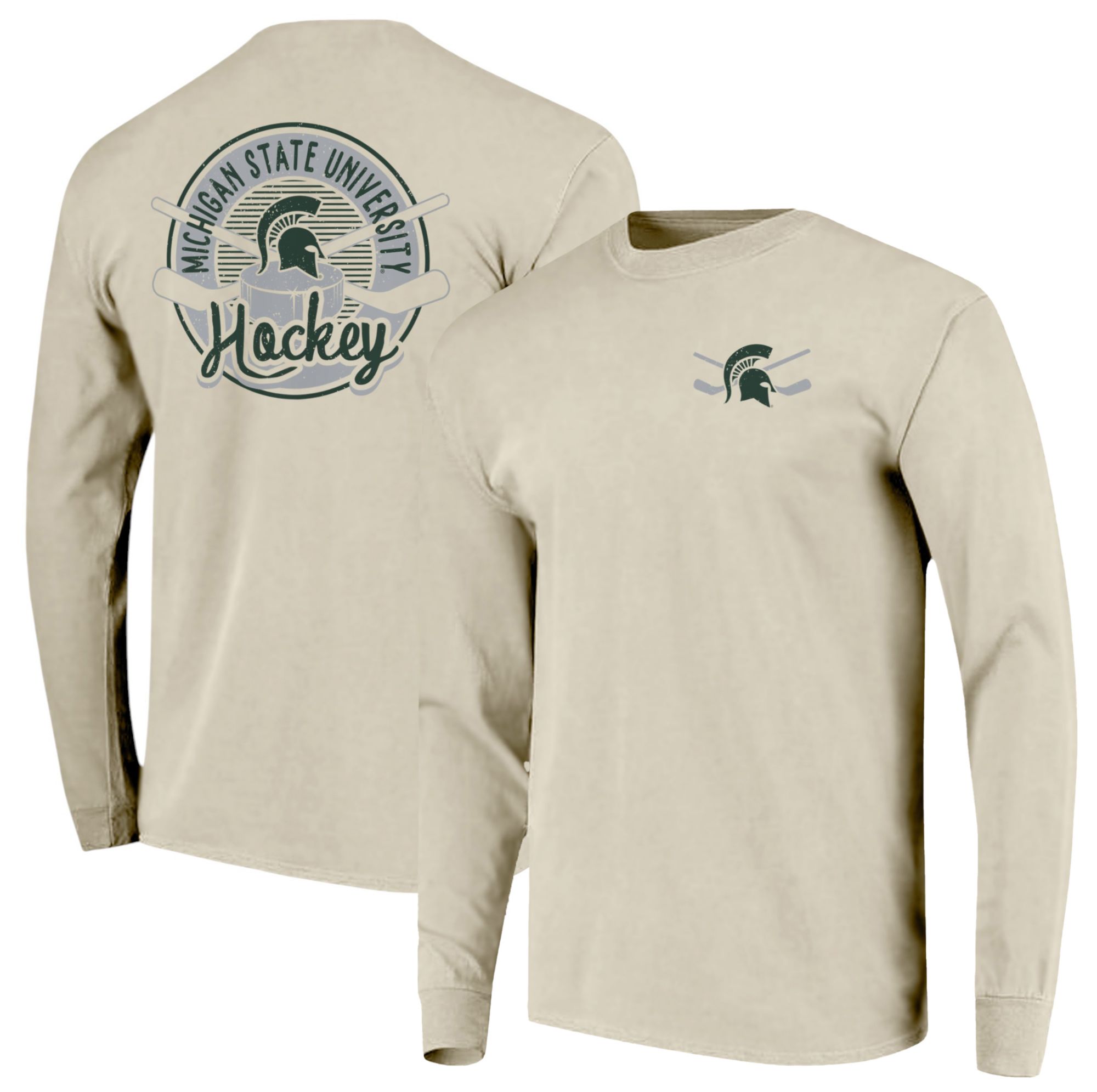 Image One Men's Michigan State Spartans Ivory Hockey Badge Long Sleeve T-Shirt