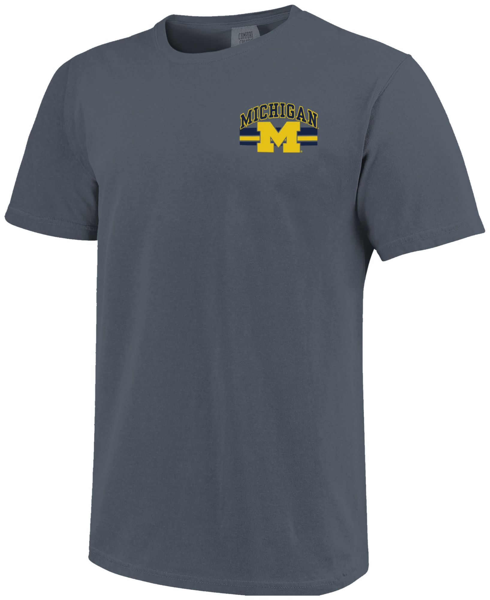 Image One Men's Michigan Wolverines Denim Mascot Arched Short Sleeve T-Shirt
