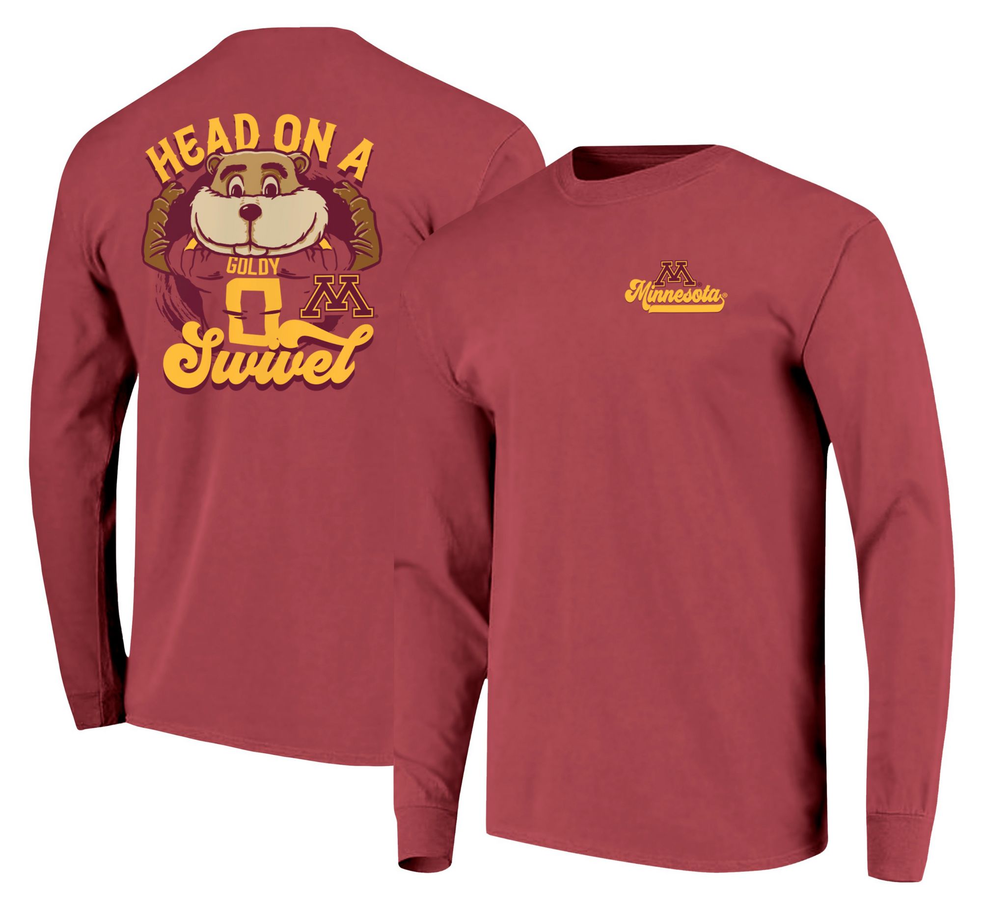 Image One Men's Minnesota Golden Gophers Red Mascot Swivel Long Sleeve T-Shirt