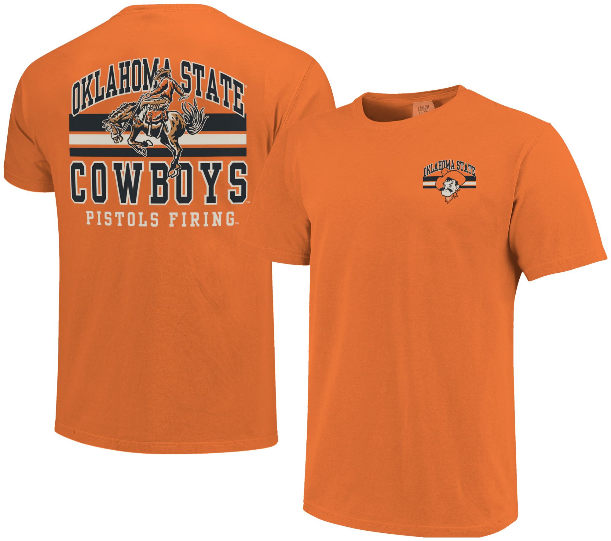 Image One Men's Oklahoma State Cowboys Burnt Orange Mascot Arched Short Sleeve T-Shirt