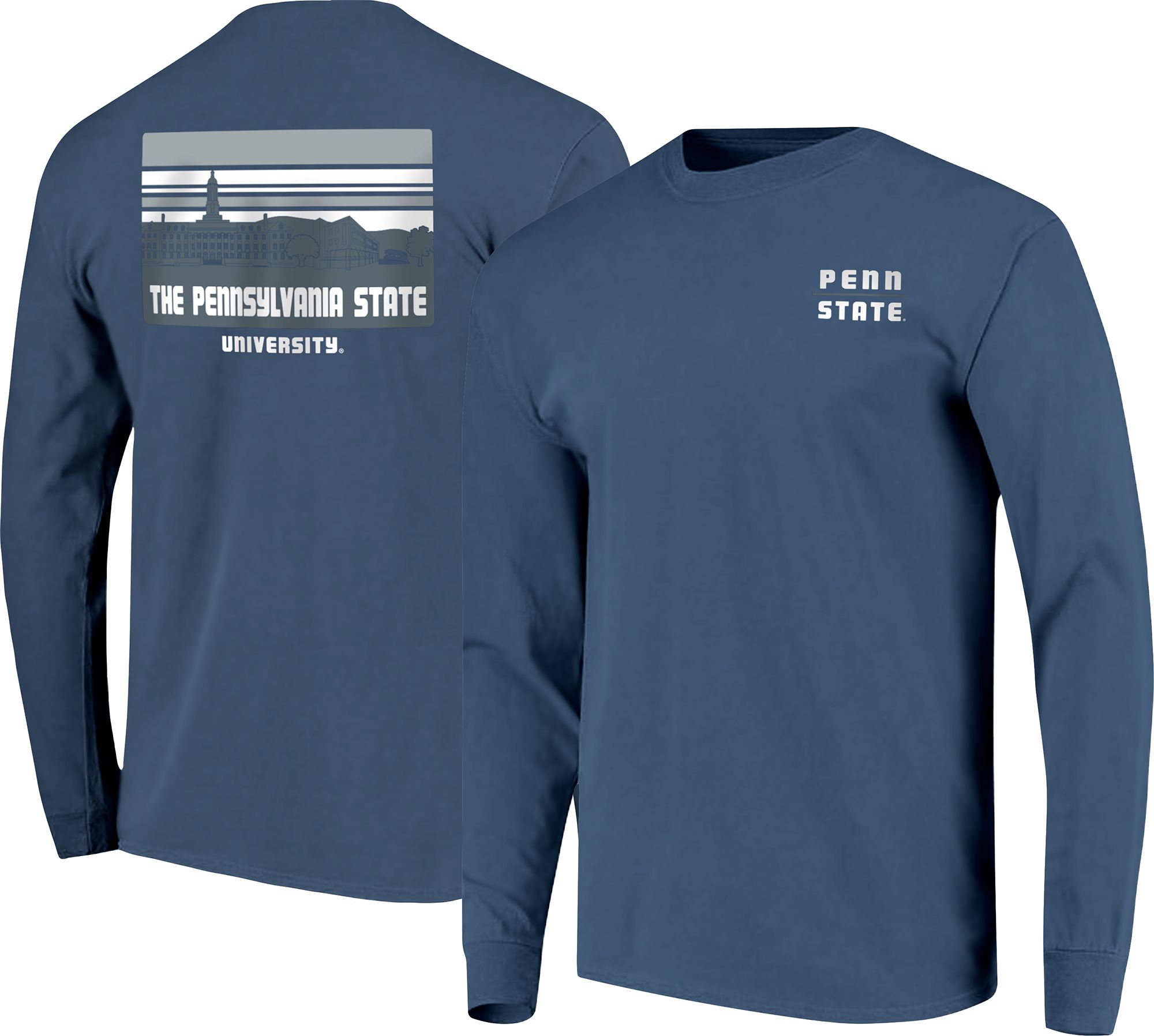 Image One Men's Penn State Nittany Lions Blue Campus Skyline Long Sleeve T-Shirt