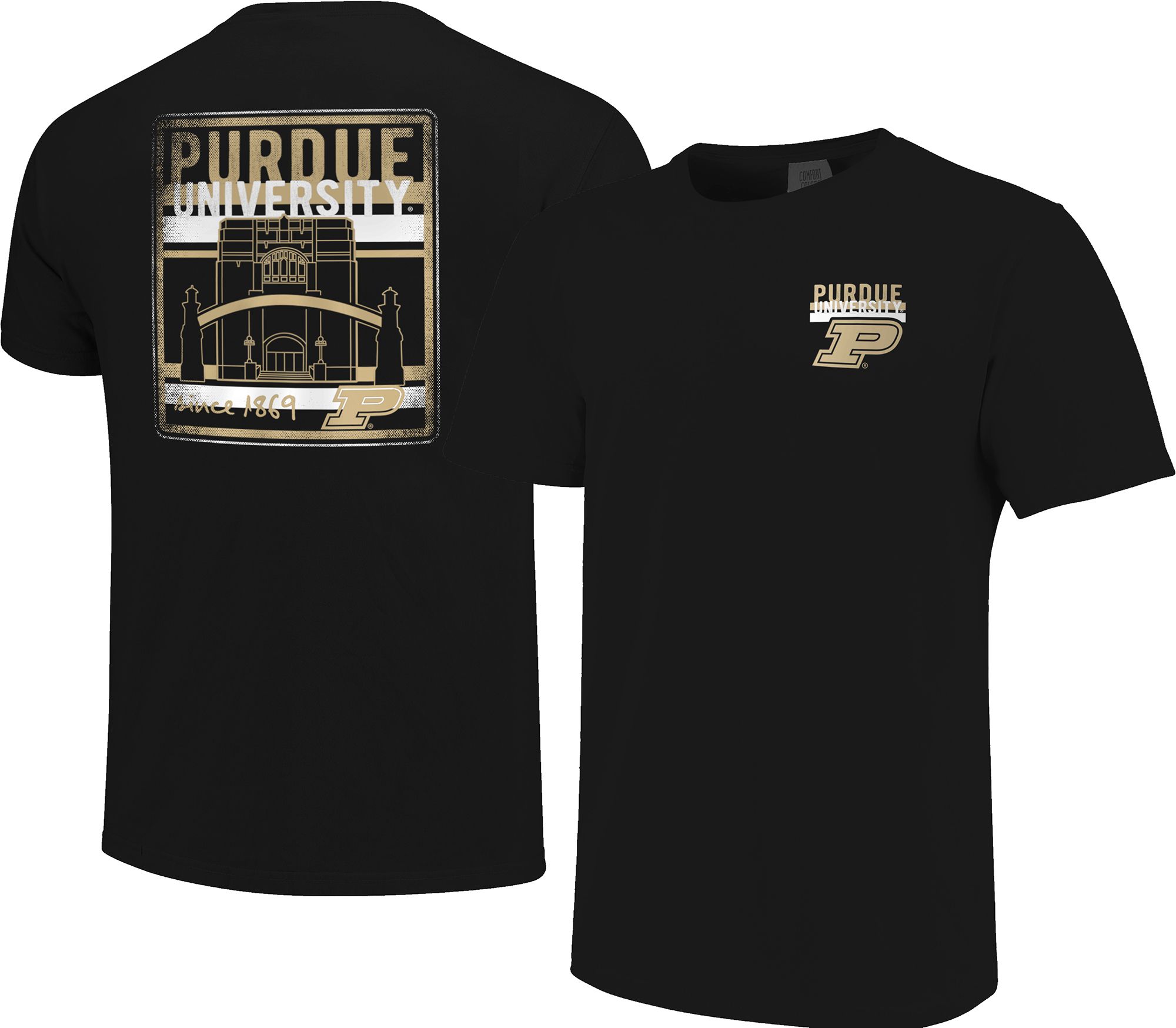 Image One Men's Purdue Boilermakers Black Campus Buildings T-Shirt