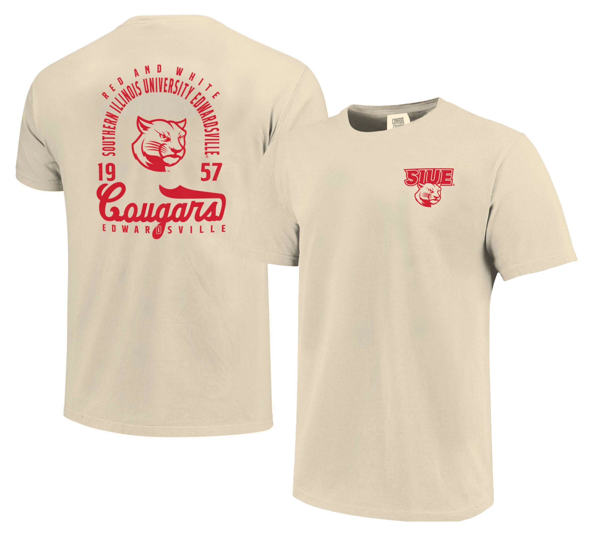 Image One Men's SIU Edwardsville Cougars Ivory Mascot T-Shirt