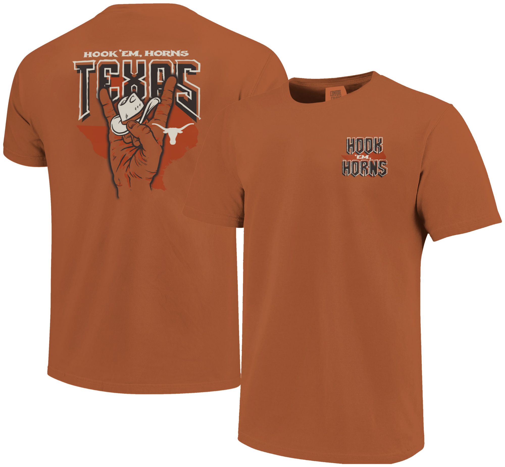 Image One Men's Texas Longhorns Yam Cowboy Handsign Short Sleeve T-Shirt