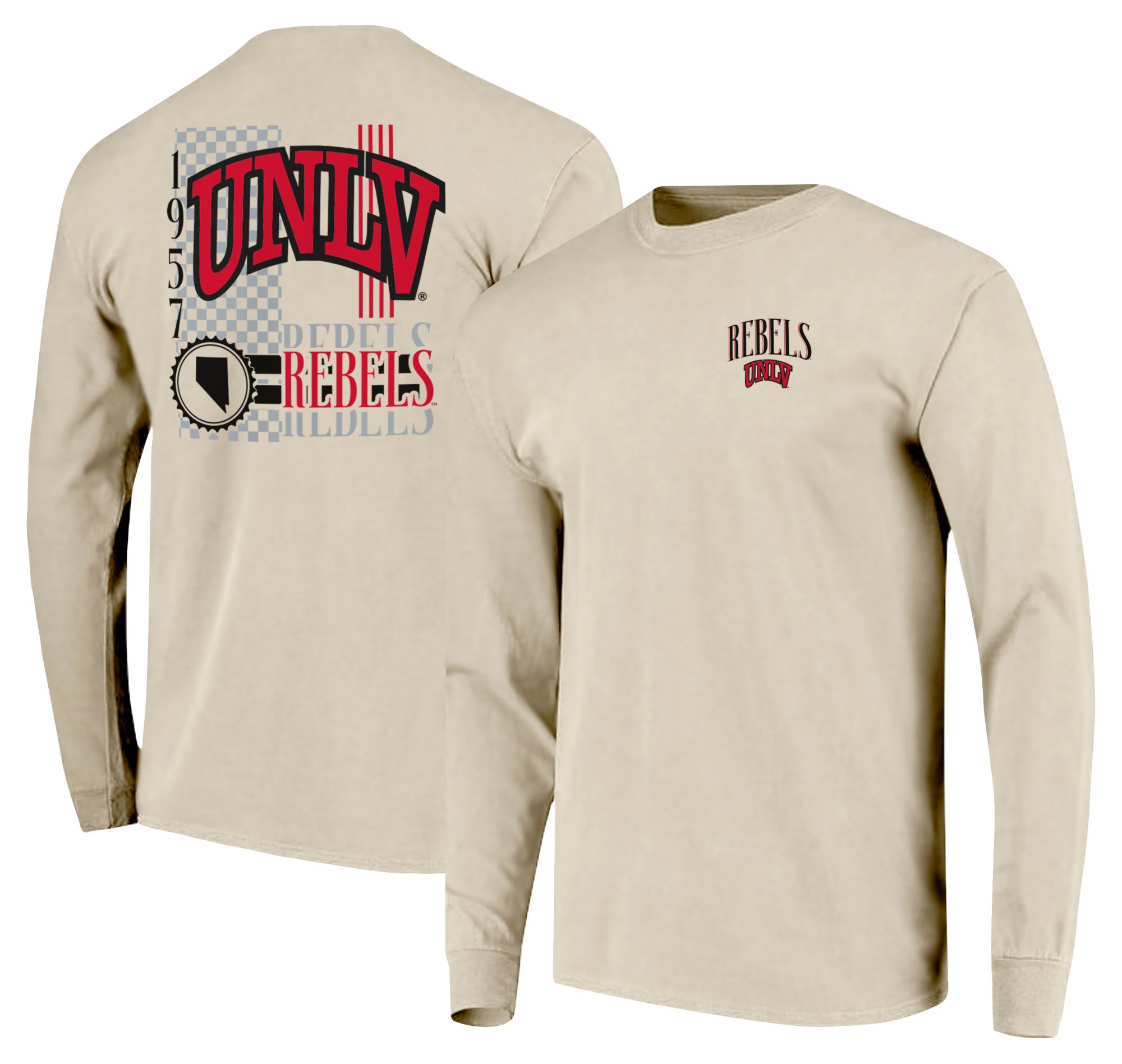 Image One Men's UNLV Rebels Ivory IV 90s Print Long Sleeve T-Shirt