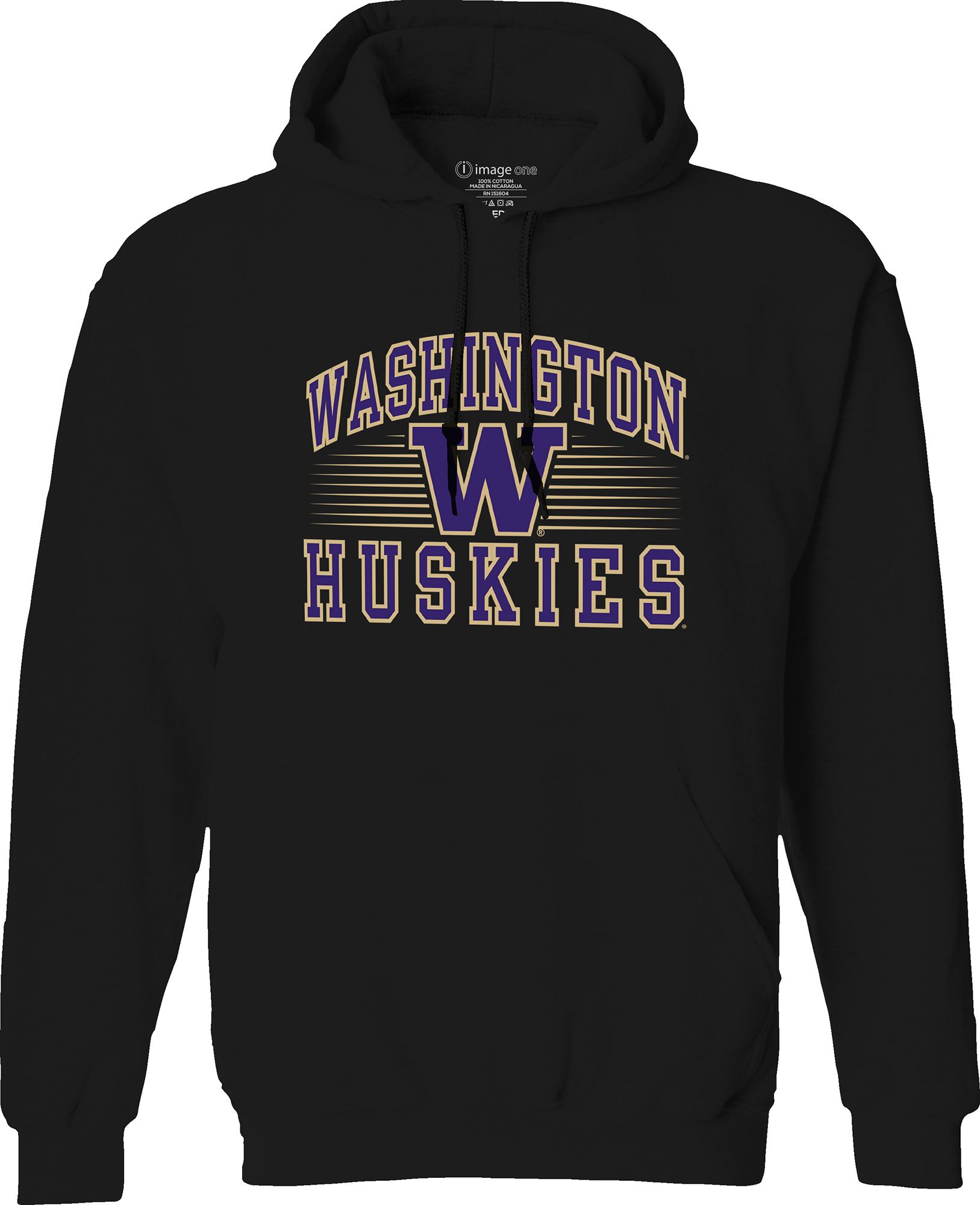 Image One Men's Washington Huskies Black Arch Wordmark Pullover Hoodie
