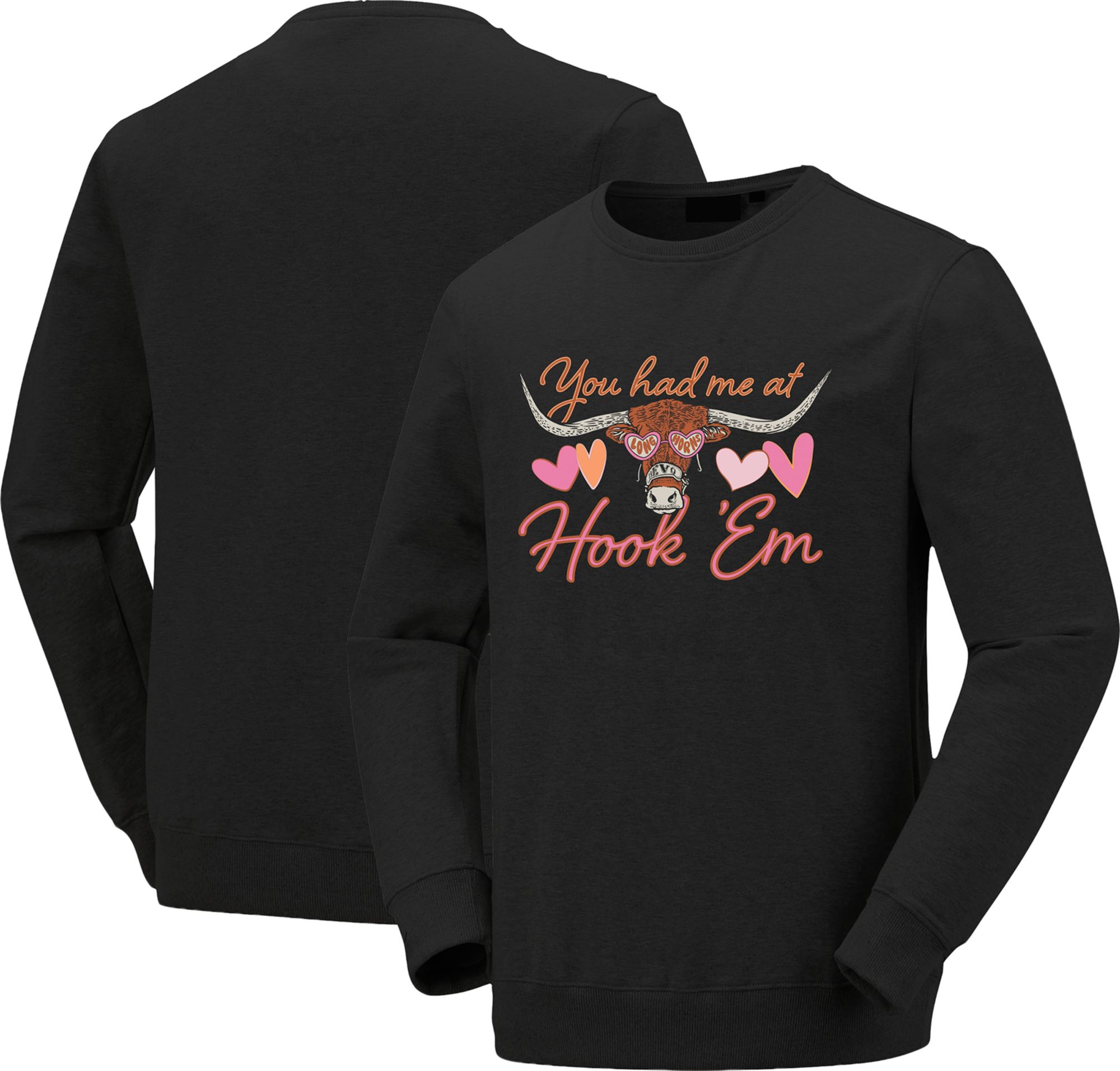 Image One Women's Texas Longhorns Black Valentine Crewneck Sweatshirt