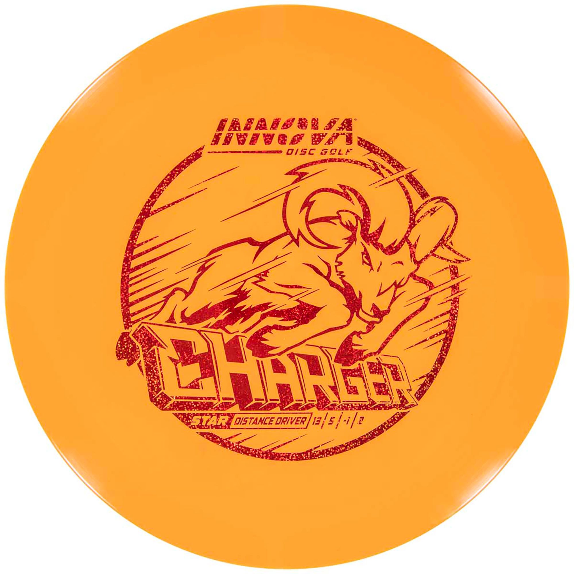 The Charger is a straight-finishing, 13-speed driver that can be thrown at full power without worrying about the disc flipping over. For players looking for the consistency of the Destroyer with less fade, try the Charger. For those looking for the big distance of the Shryke, but in a disc that can better handle the wind, try the Charger.The Innova Charger is a slightly overstable maximum distance driver that unloads a big hit on the fairway. At a blistering 13 speed, it separates itself from the herd in a hurry!