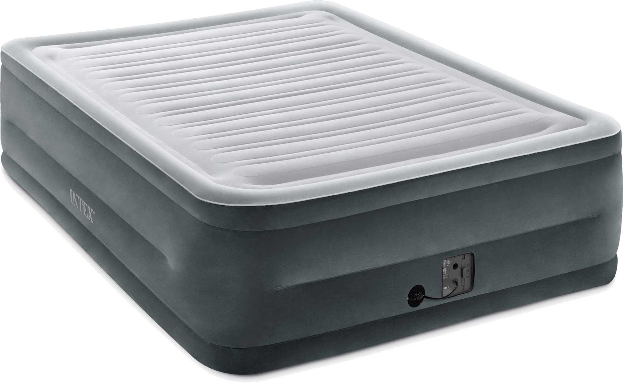 Getting a good night’s sleep is quick and easy with the Intex Comfort Plush Queen with Built-In Pump. This comfortable, durable air mattress gives plenty of room to get cozy, featuring a flocked top and sides and a sturdy vinyl bottom. The integrated AC electric pump inflates the bed in just about 4 and a half minutes, letting you set up and get to sleep quicker.