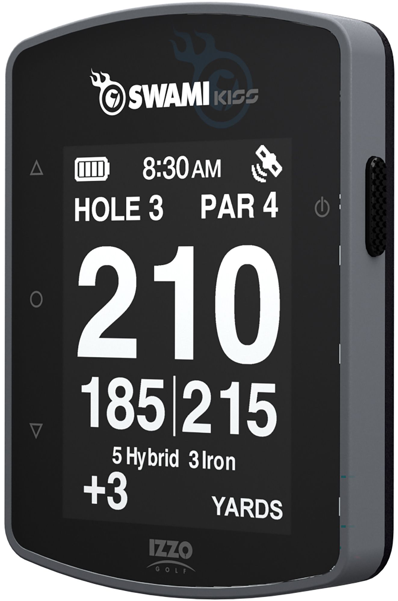 Speed up play while dialing in your game with the new and improved Izzo Swami Kiss 2.0 Golf GPS. The Swami Kiss 2.0 features a larger, 2.5 inch display and an innovative iCaddie feature that will make club suggestions based on your distance to the target. The Swami Kiss comes pre-loaded over 38,000 worldwide courses for remarkable utility out of the box. Automatic course and hole recognition enable operational simplicity, while distances to the front/center/back of the green and layup/carry yardages to hazards and doglegs allow for more precise shot planning. Added display versatility includes portait or landscape orientation layouts and a center-only readout option that displays the distance in a larger font size. The rechargeable lithium-ion battery can last up to 4 rounds on a single charge.