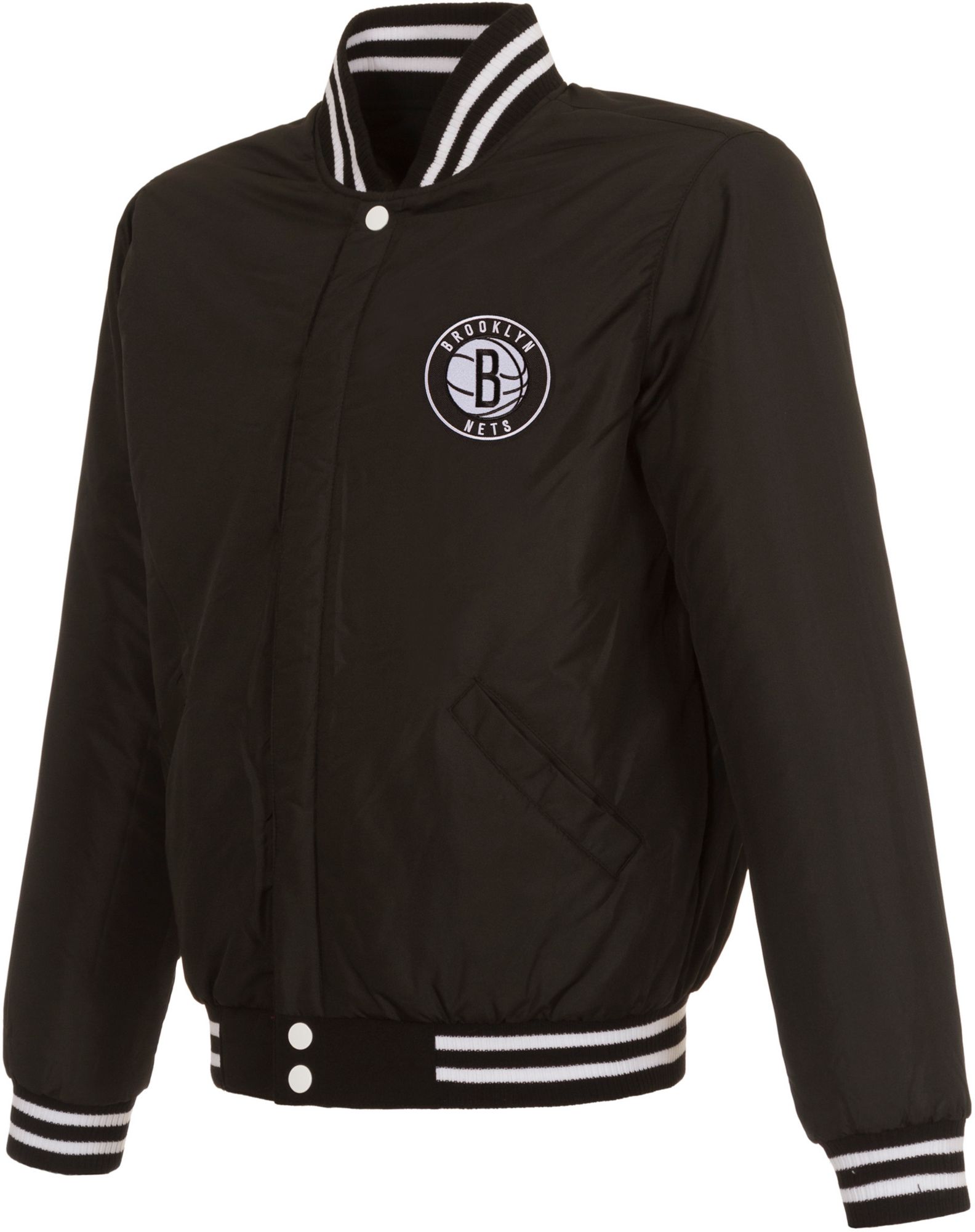 JH Design Men's Brooklyn Nets Black Varsity Jacket
